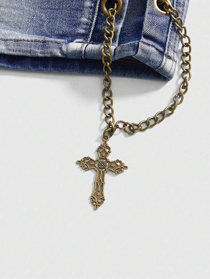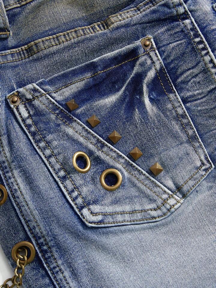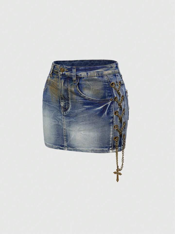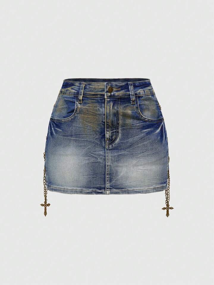 Hippie Gonna di jeans con effetto consumato e catena laterale, stile Y2K