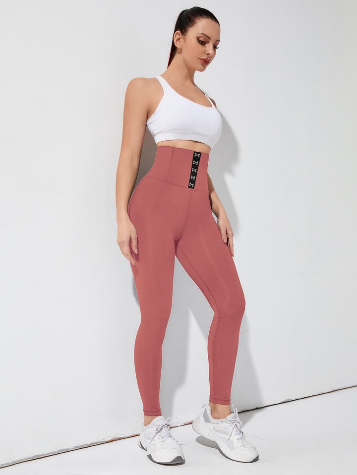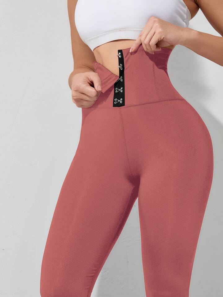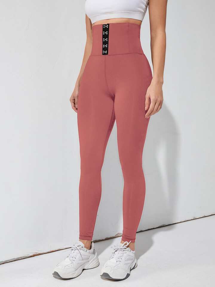 Leggings sportivi con gancetti ampia fascia in vita monocolore