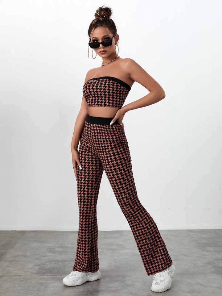 pied de poule Top fasce corto & Pantaloni svasati