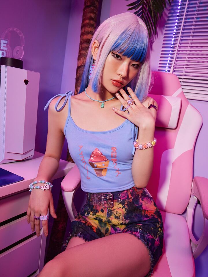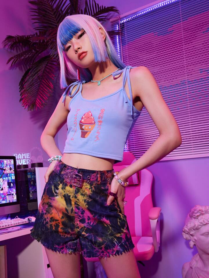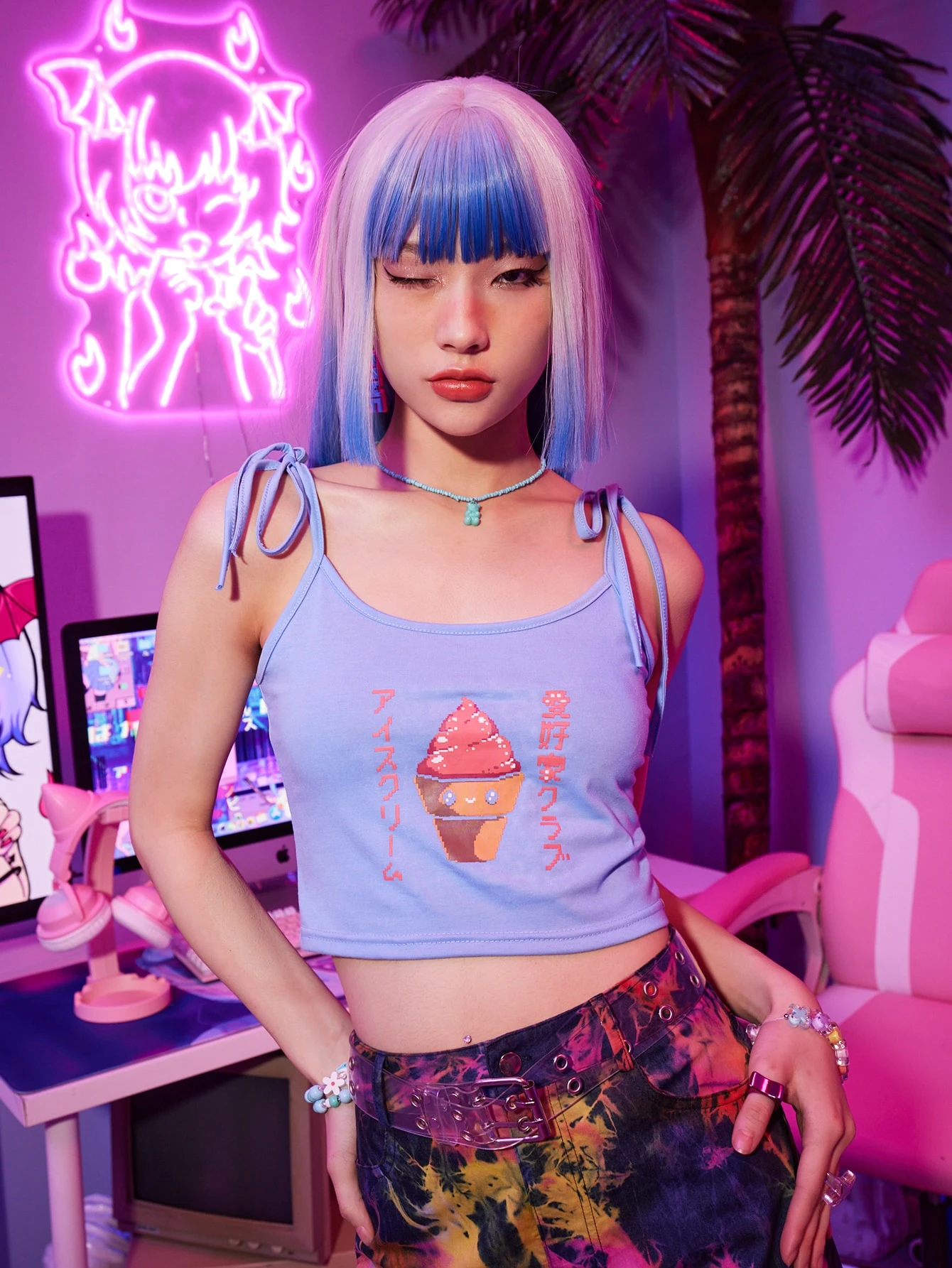 Ilustrata Top con bretelle sottile con stampa gelato Anime