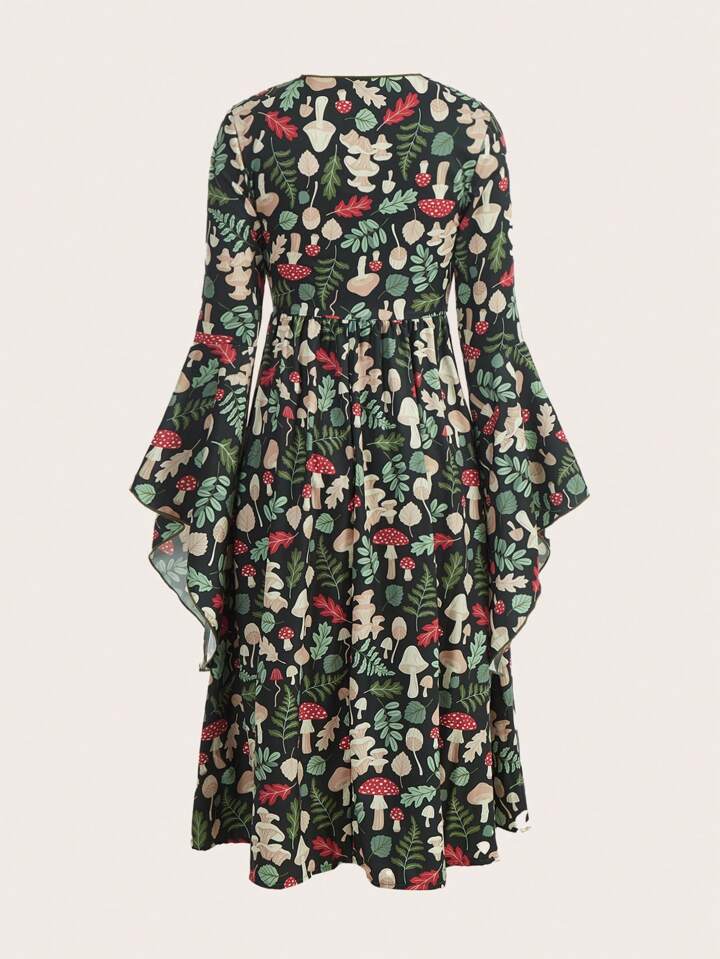 Inna Moreva Fairycore Abiti con stampa funghi con manico svasato scavato