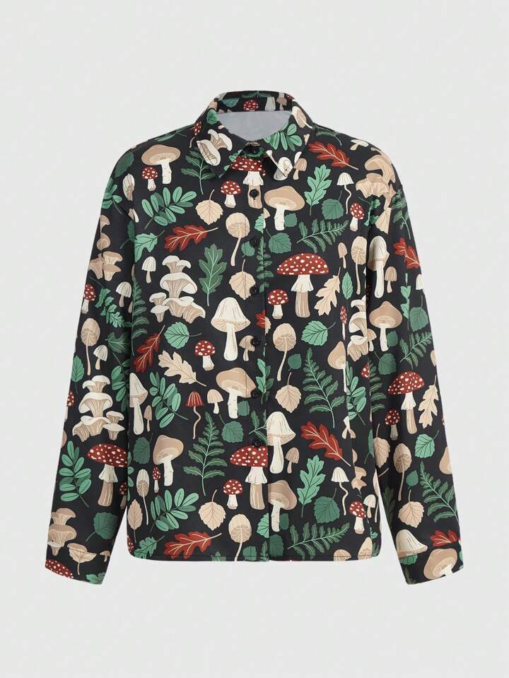 Inna Moreva Cappotto con stampa funghi con bottone frontale