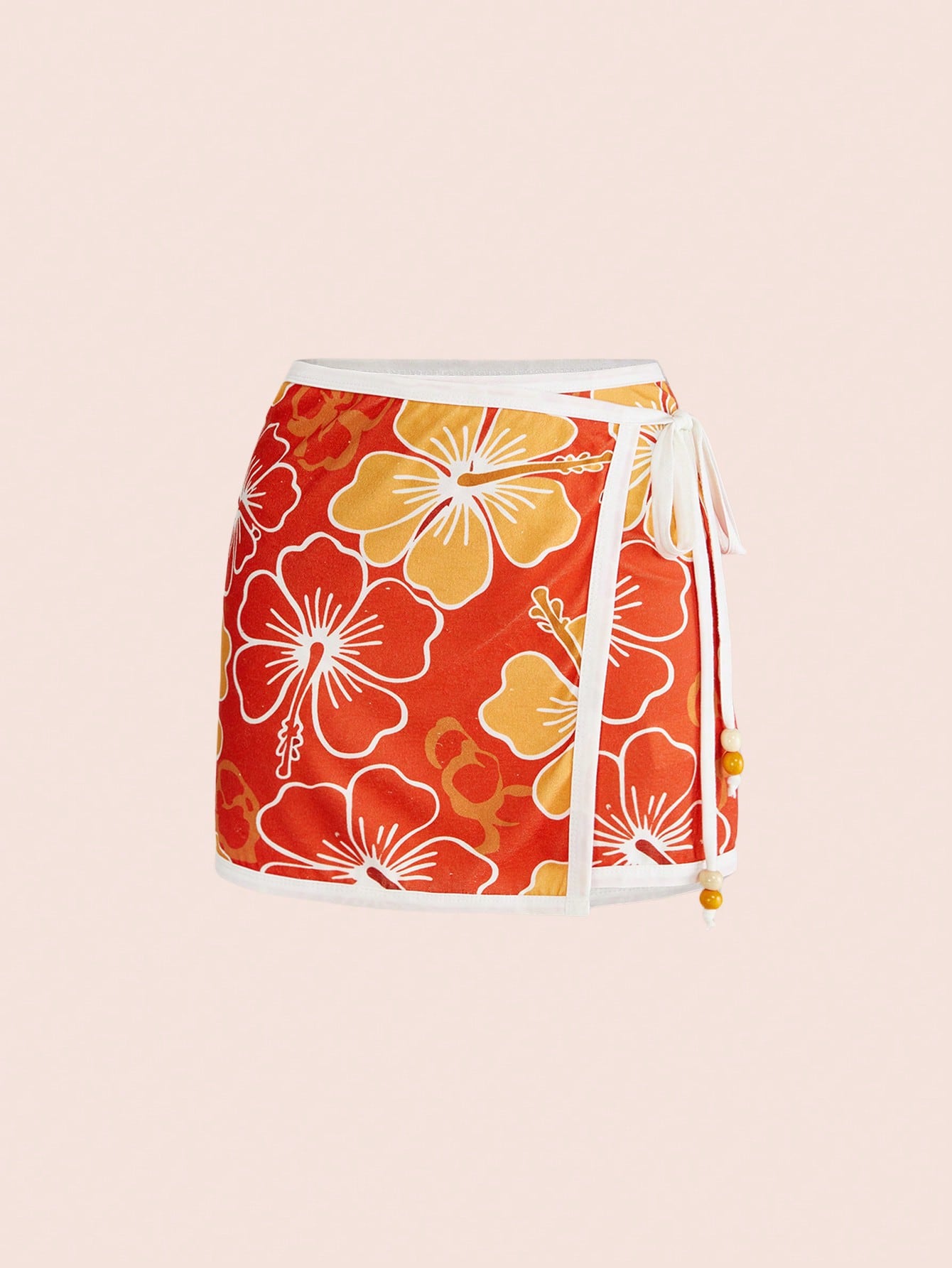 Pareo mini monopezzocon stampa floreale di ibisco stile "Island Girl" per donna