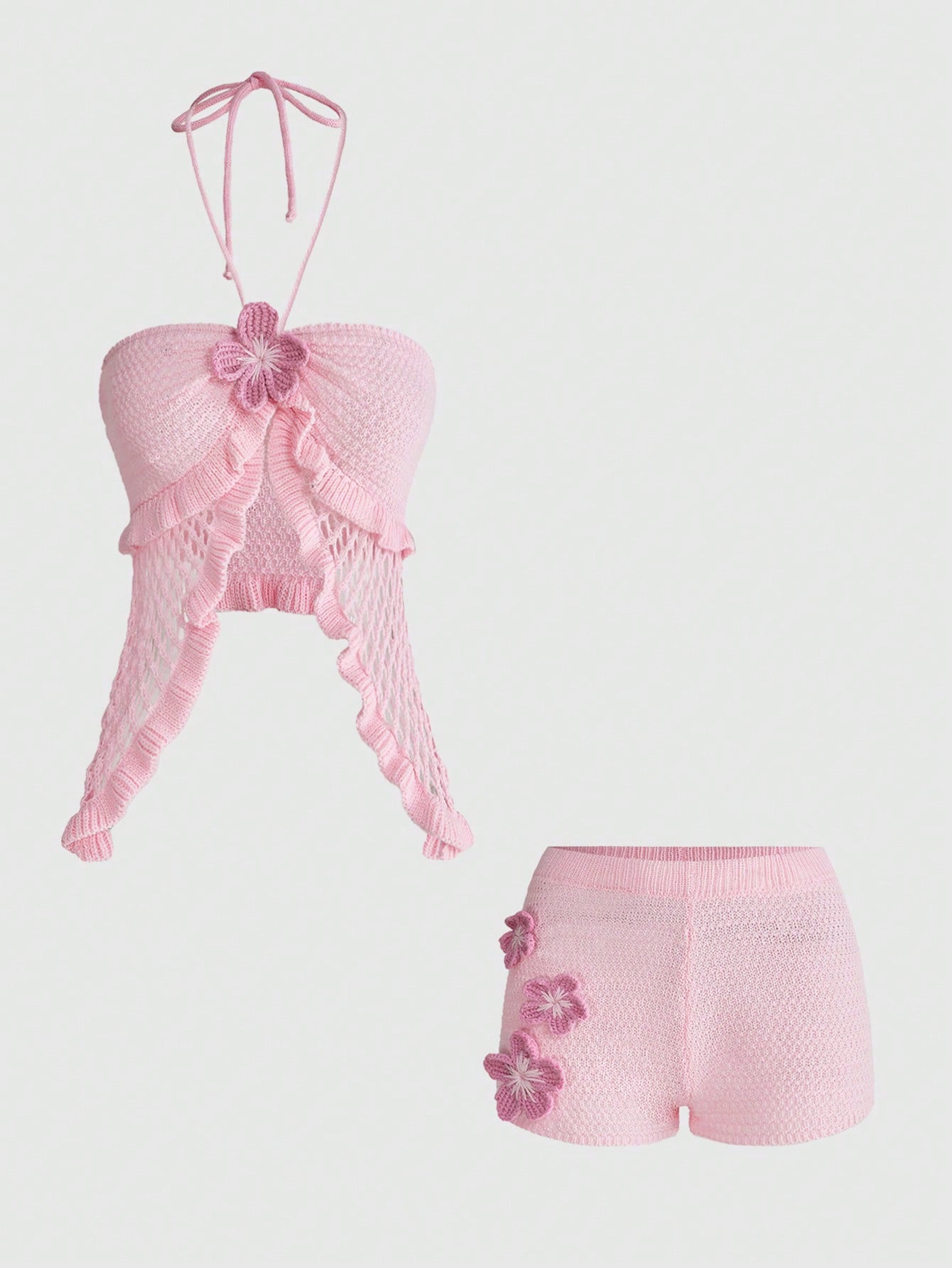 Set casual da 2 pezzi da donna composto da canotta con collo a giro e laccio e pantaloncini ultra vita bassa, stile vacanza in isola