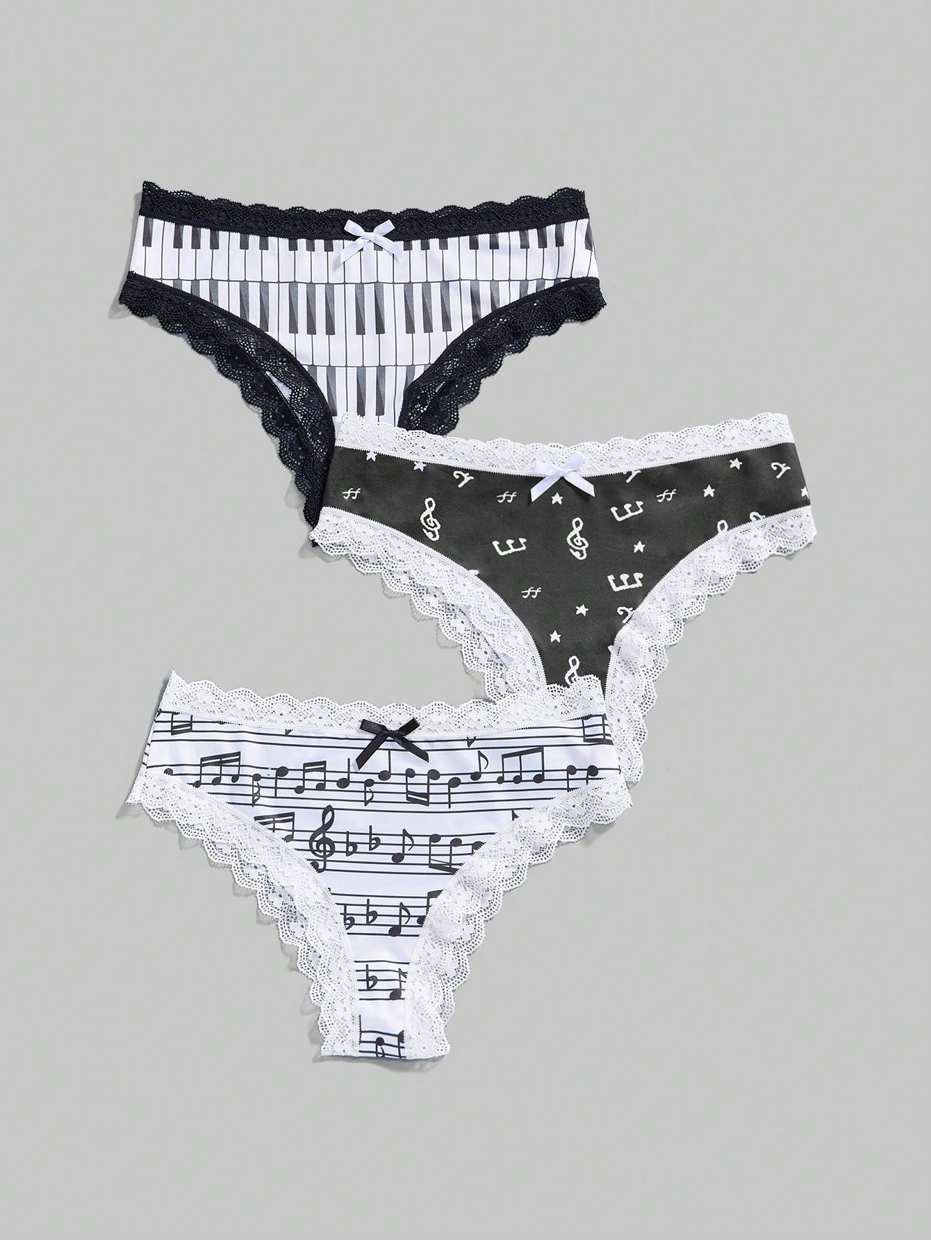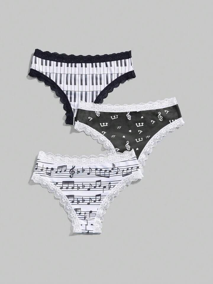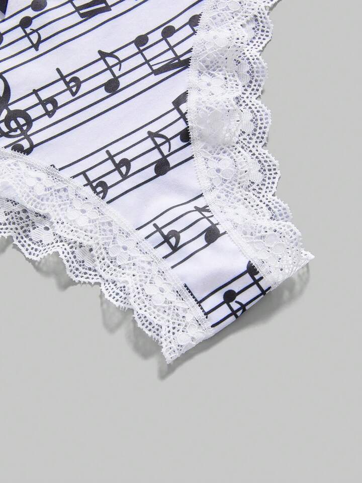 J-Fashion 3 pezzi Set di biancheria intima da donna con ferretto, note musicali e stampa di lettere in pizzo