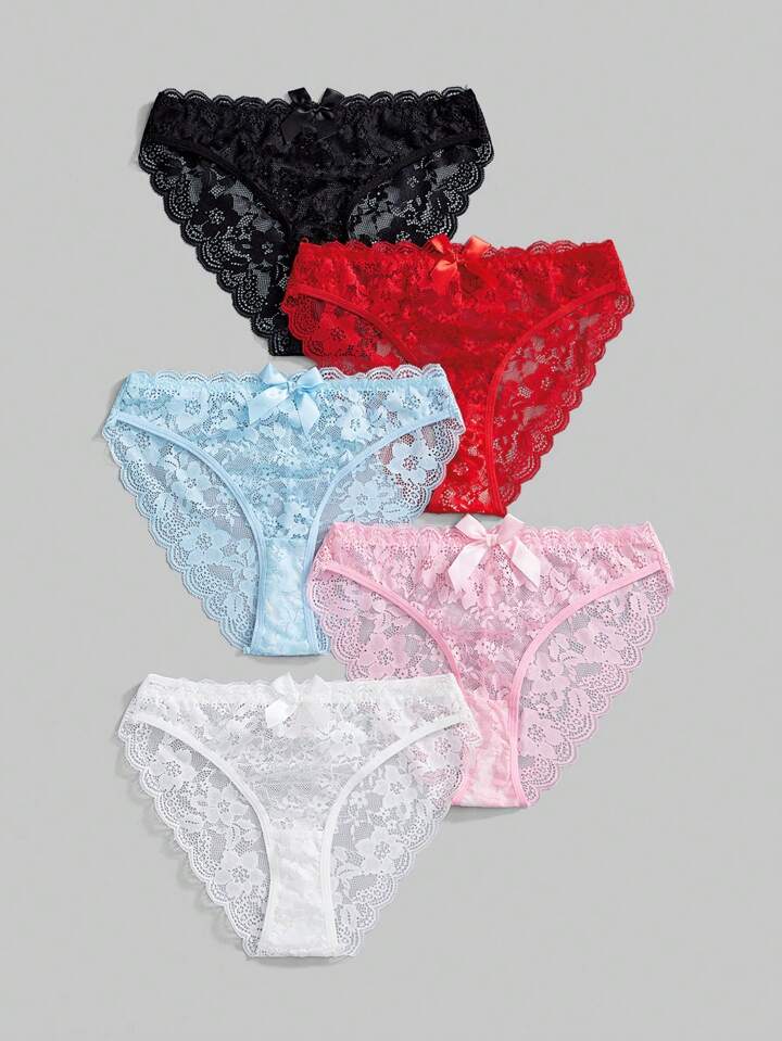 J-Fashion Set di 5 pezzi di perizomi da donna stile retrò Y2K con fiocchi e decorazioni in pizzo, adatto per l'estate