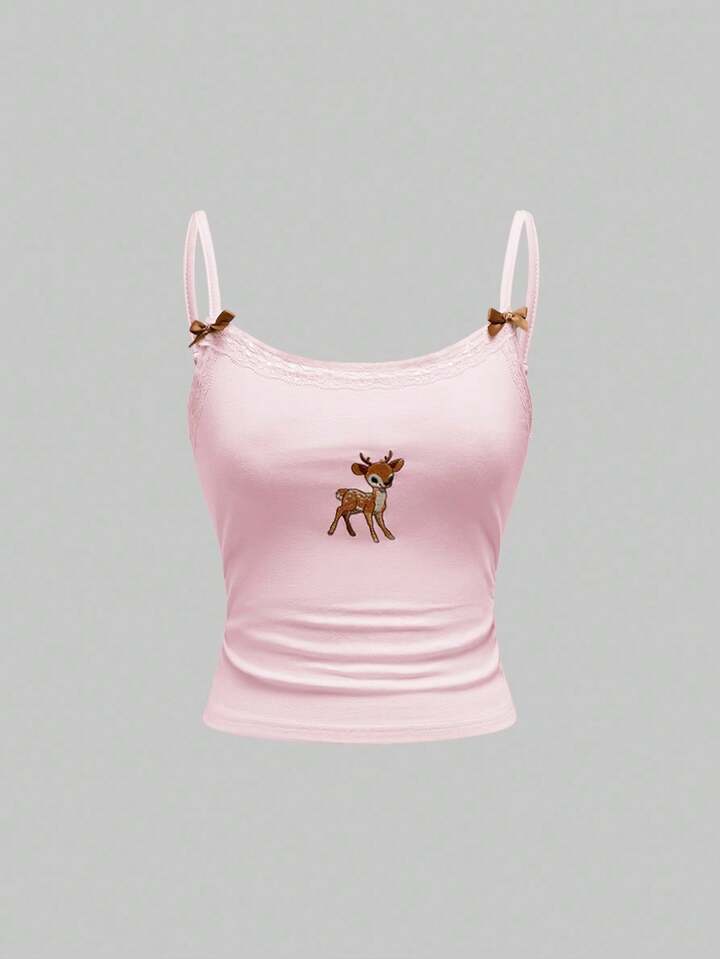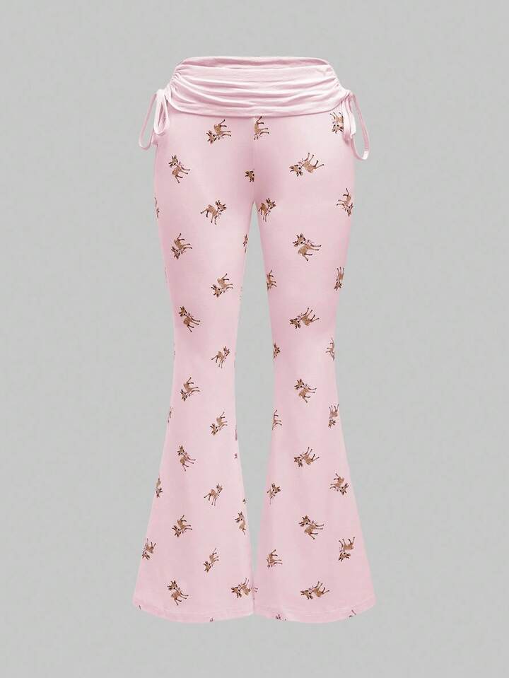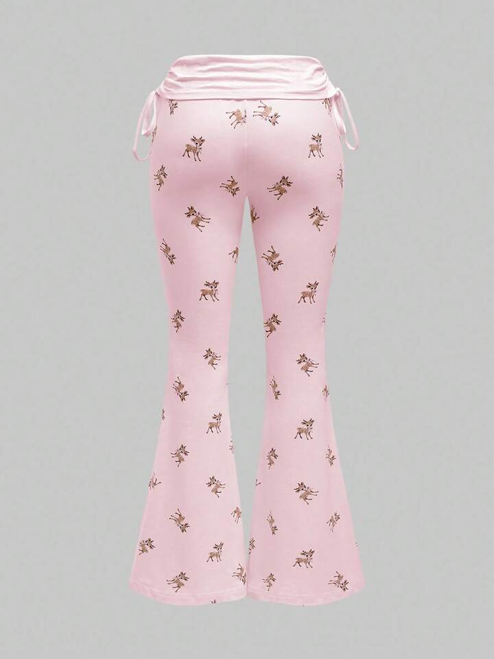 J-Fashion Blusa ricamata in pizzo con cervi abbinata a pantaloni a zampa con stampa di cervi