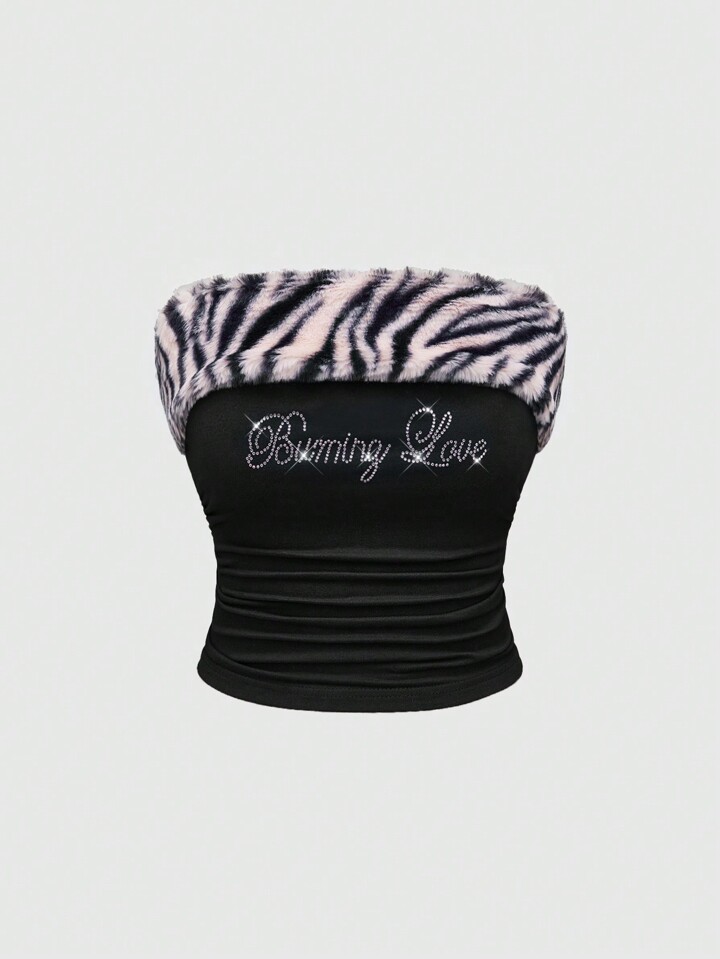 J-Fashion Top tubo fasciante a coste con decorazione di strass, stampa zebrata e pelle di coniglio, stile gyaru, adatto per il carnevale