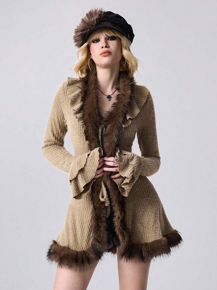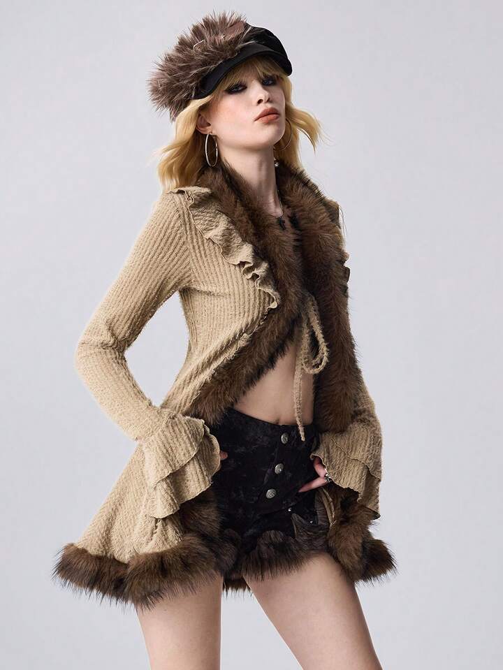J-Fashion Giacca da donna con taglio regolare e bordo in pelliccia, stile Mori Kei