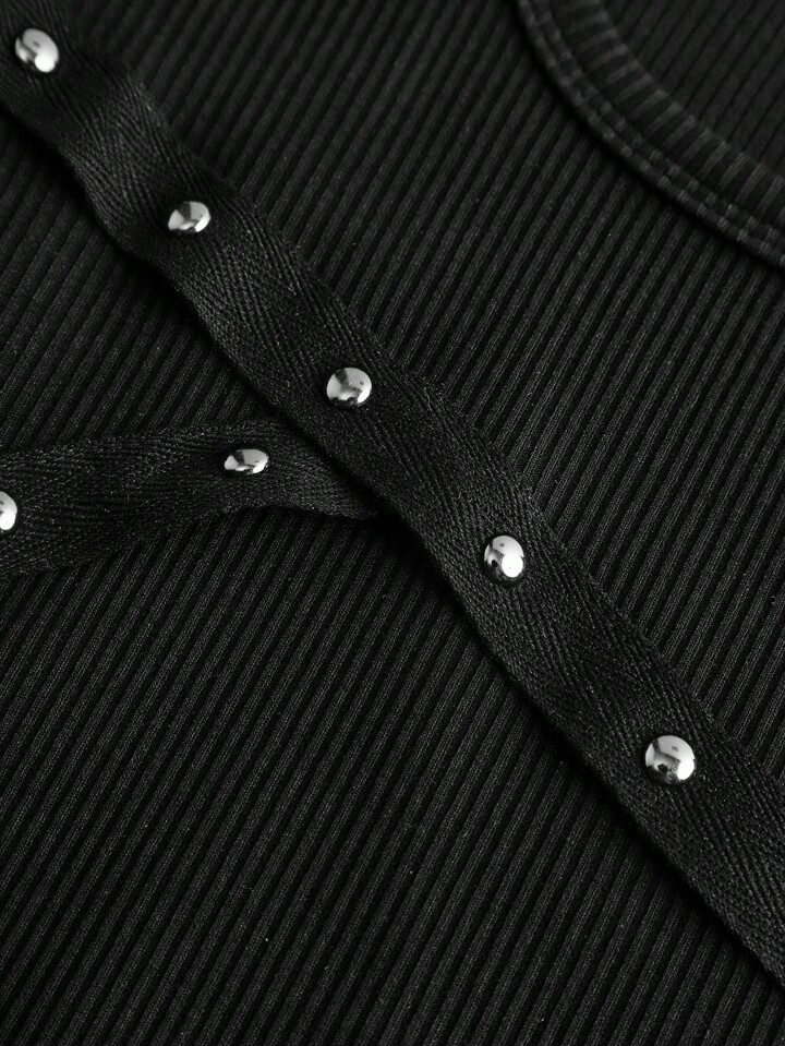 J-Fashion Maglietta nera da donna stile punk, sexy, con schiena scoperta e rivetti, adatta per l estate, cerimonie di laurea, Pasqua, concerti musicali, Nashville, festival