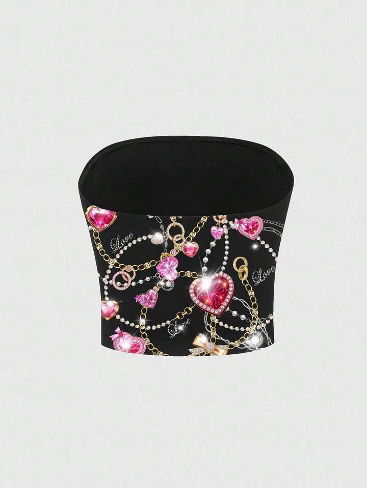 J-Fashion Top tubo da donna con dettagli a catena, stampa digitale con gemme rosa, sexy