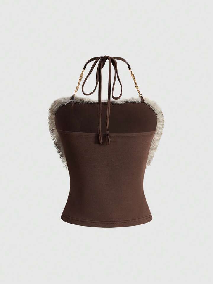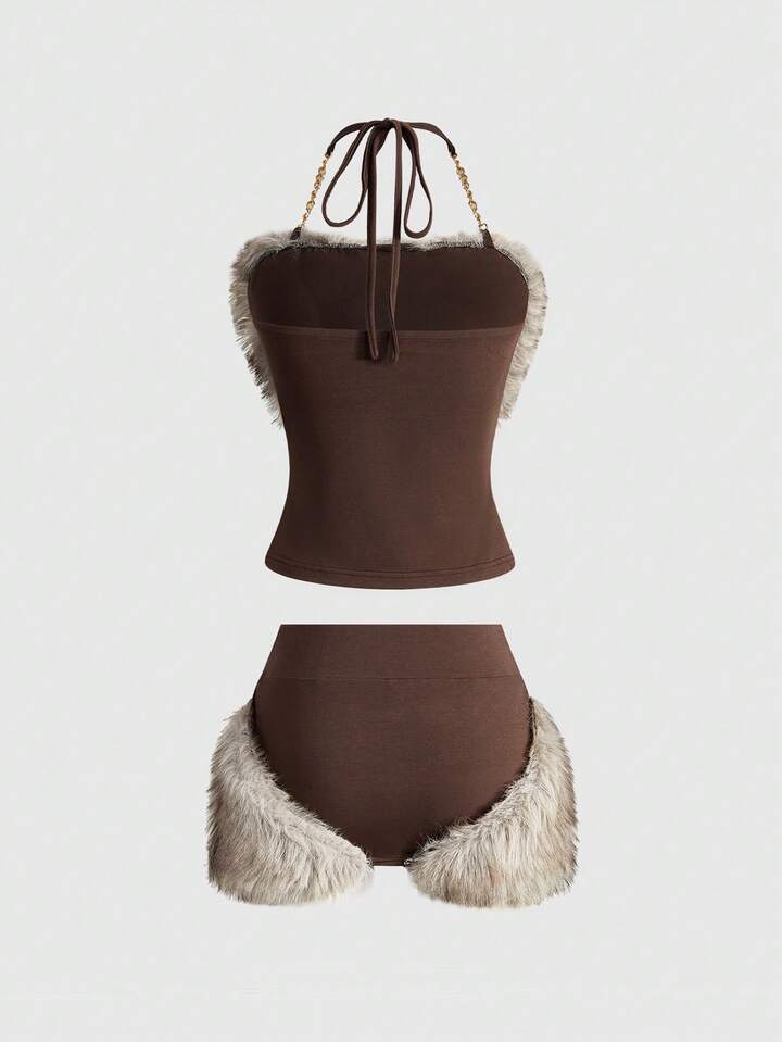 J-Fashion Set da 2 pezzi composto da top canotta con catena e scollo alla halter in stile retrò Y2K e minigonna super vita bassa, adatto a festival musicali e stile Shibuya girl