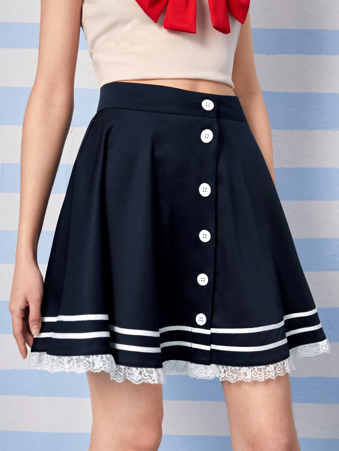 J-Fashion Gonne da donna Pizzo a contrasto Bottone frontale A strisce Casual