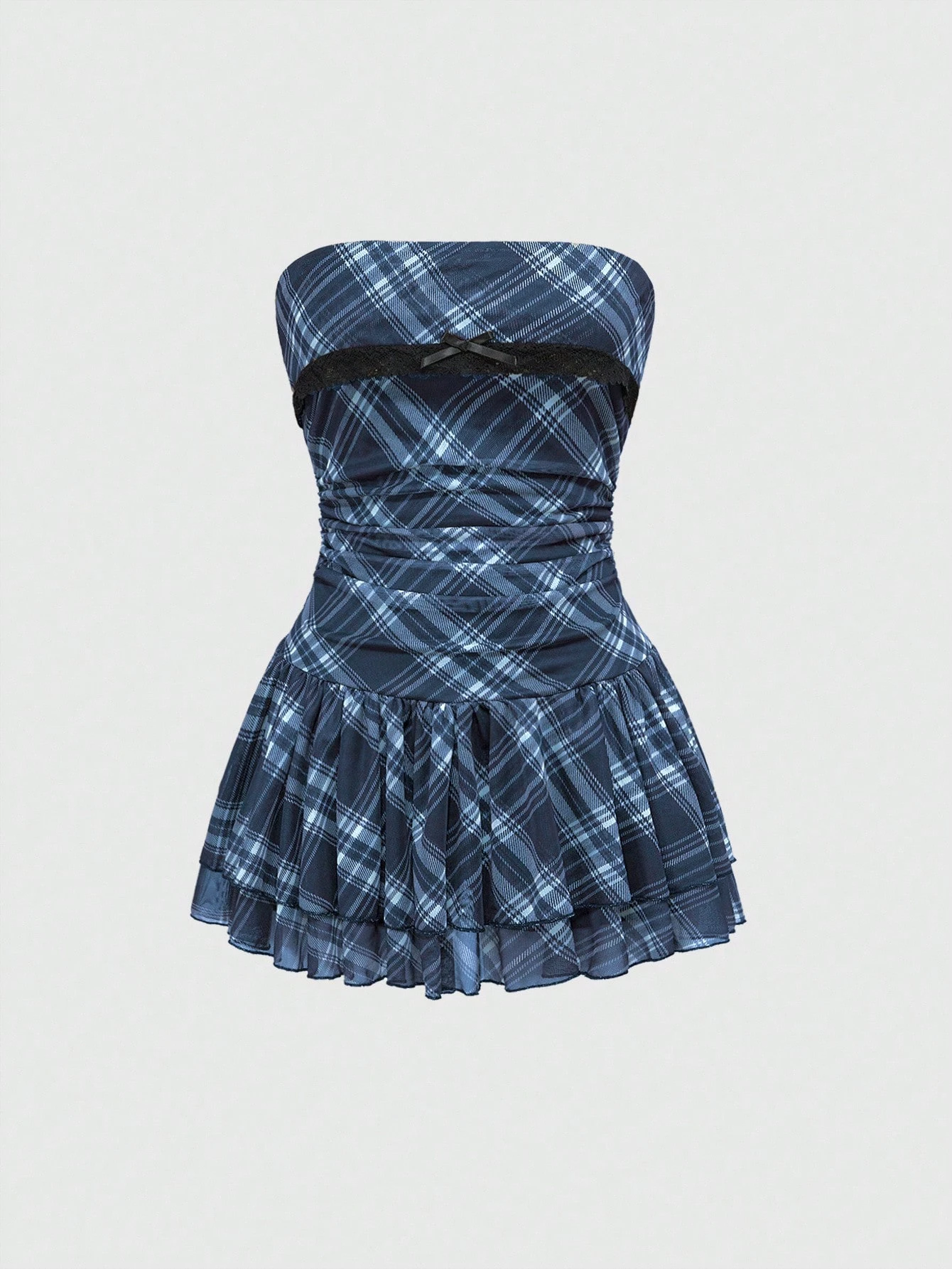 J-Fashion Abito mini vintage dolce con stampa a quadri, volant sul fondo e senza spalline per le donne