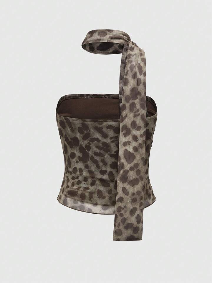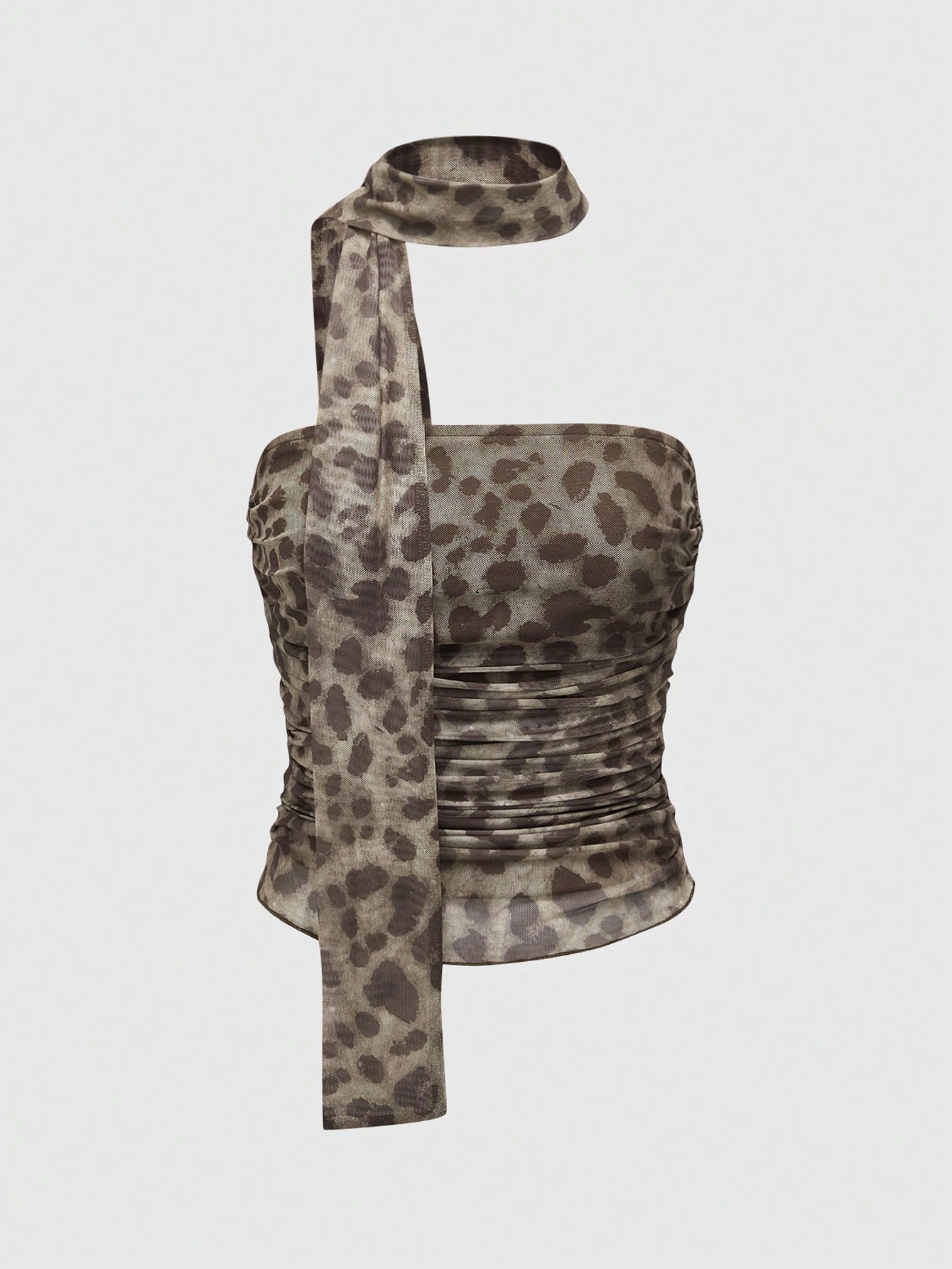 J-Fashion Canotta aderente senza maniche con arricciature e stampa leopardata per donna