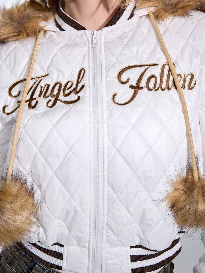 J-Fashion Cappotto imbottito corto con ricami, stile retrò Y2K, sottocoltura, patchwork in pile, stile back to school per donne