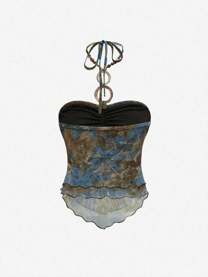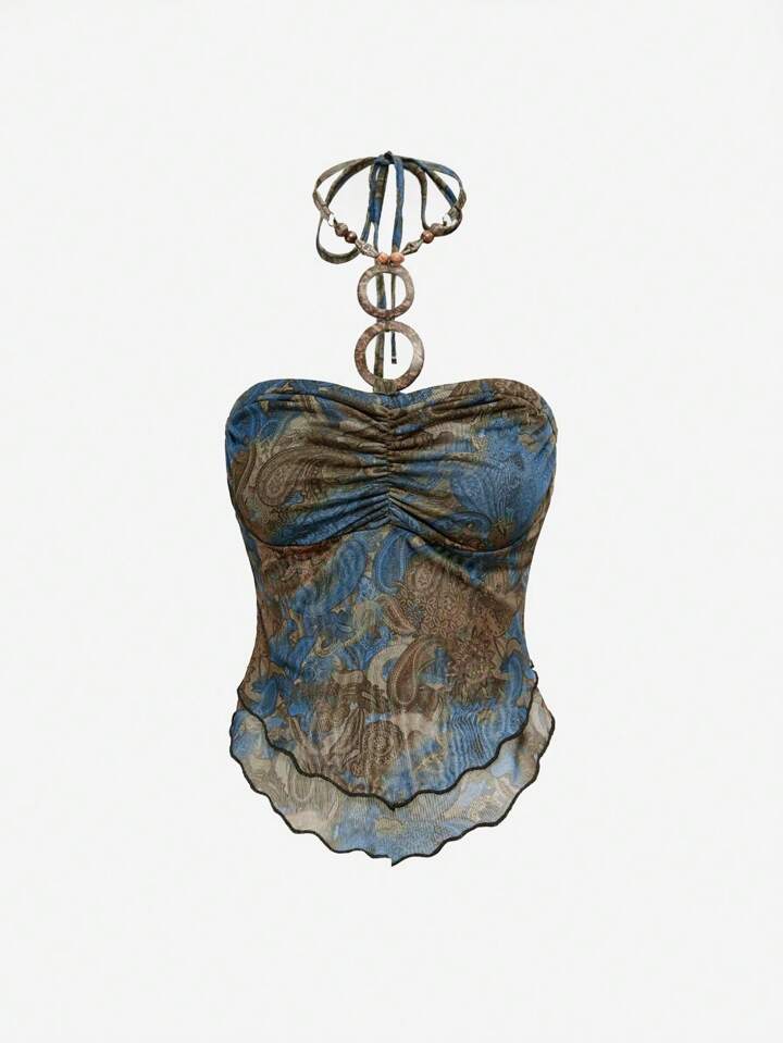 J-Fashion Crop top da donna con stampa floreale paisley vintage e scollo a canottiera