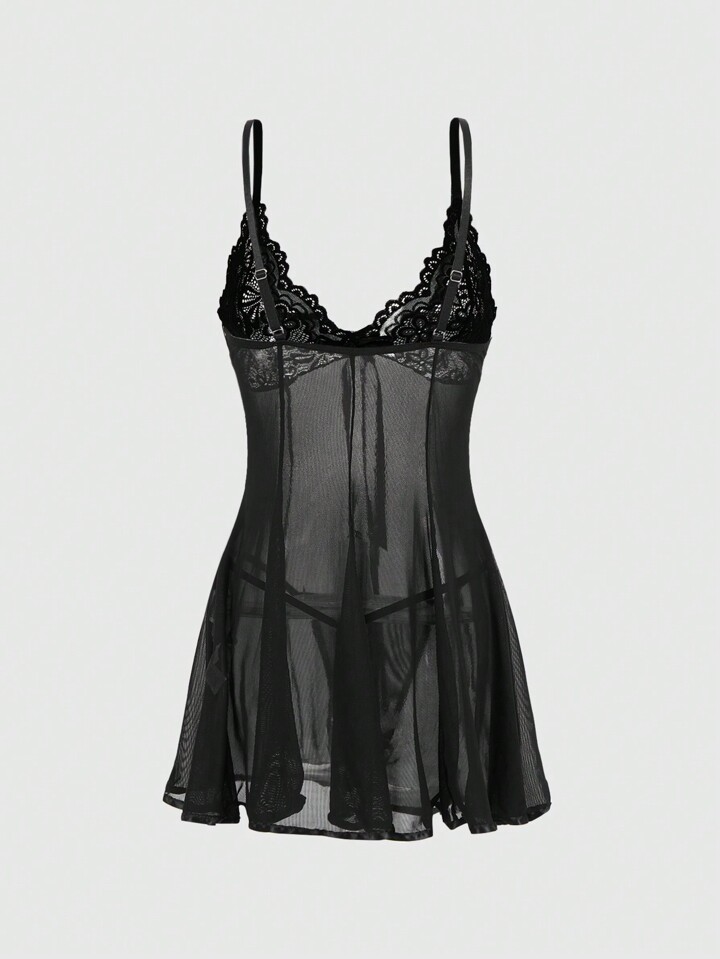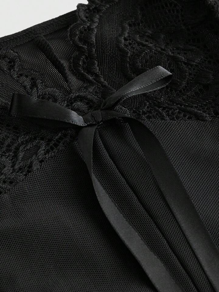 J-Fashion Set di abito trasparente con merletto, in rete e fiocco, stile Y2K e d'avanguardia, sexy