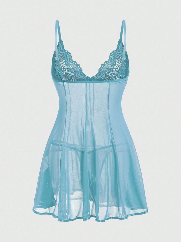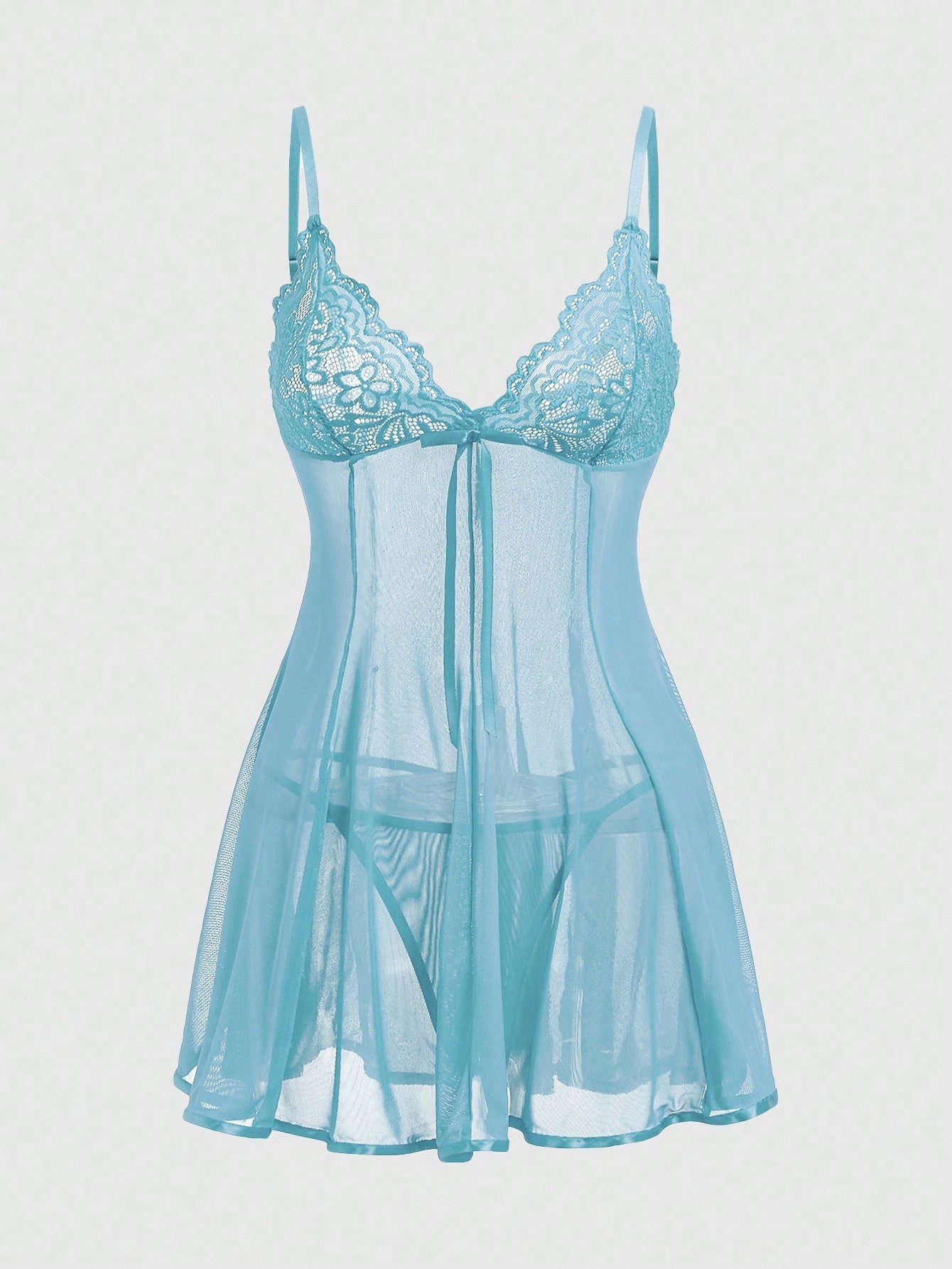 J-Fashion Set di abito trasparente con inserti in pizzo, in rete e fiocco in stile Y2K e d'avanguardia