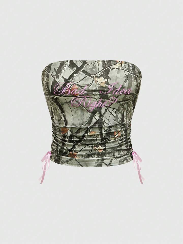 J-Fashion Top corto a fascia con stampa mimetica in stile Y2K e strada, con coulisse e decorazioni in strass, completo da donna