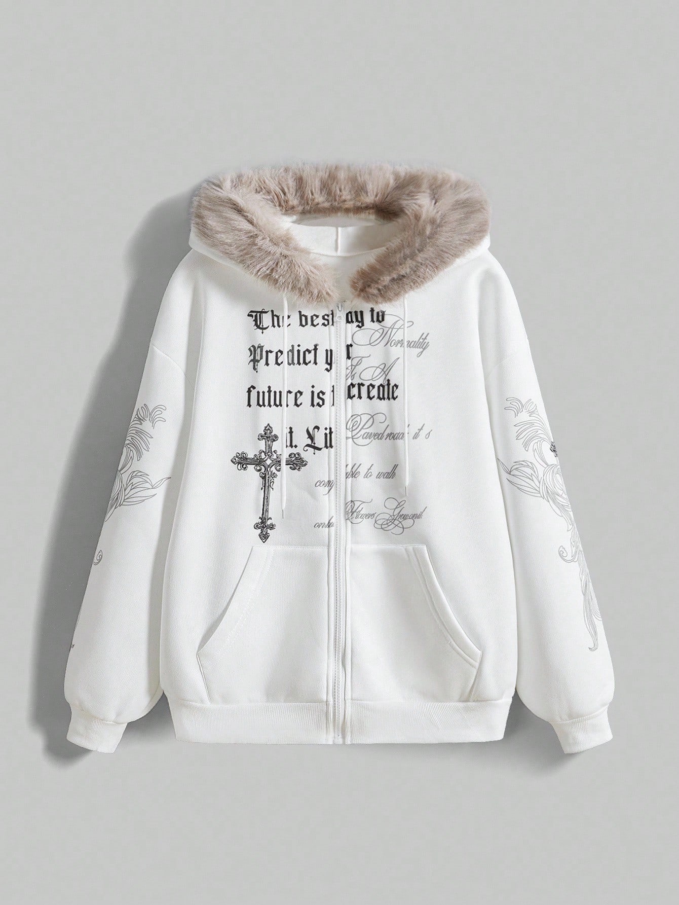 J-Fashion Felpa con cappuccio a maniche lunghe con stampa grafica vintage americana stile Y2K consumata