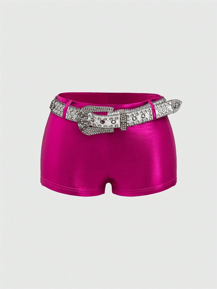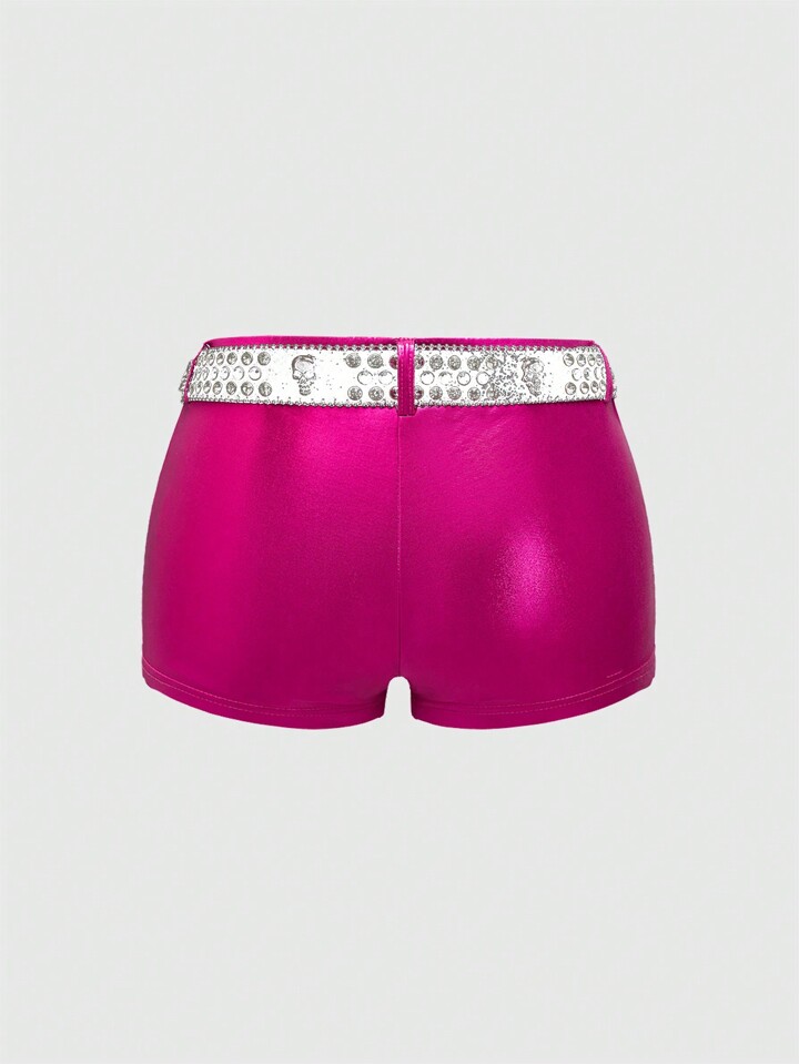 J-Fashion Pantaloncini corti aderenti minimi con glitter per donne stile Y2K