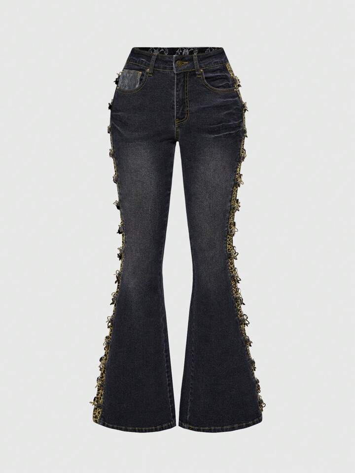 J-Fashion Jeans da donna a vita molto bassa, stile Y2K Harajuku Gyaru, con toppe in pizzo, vita vintage, vita super bassa