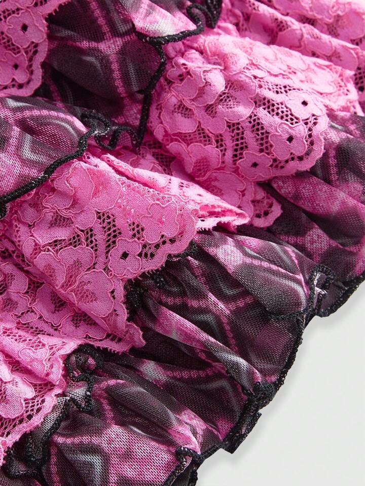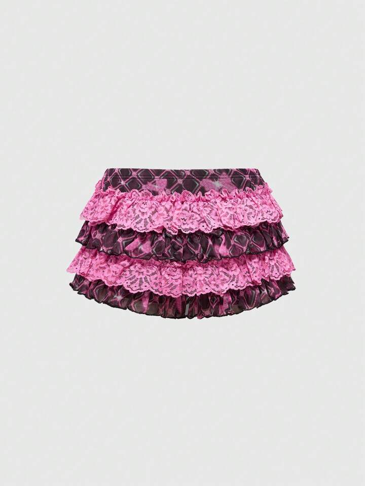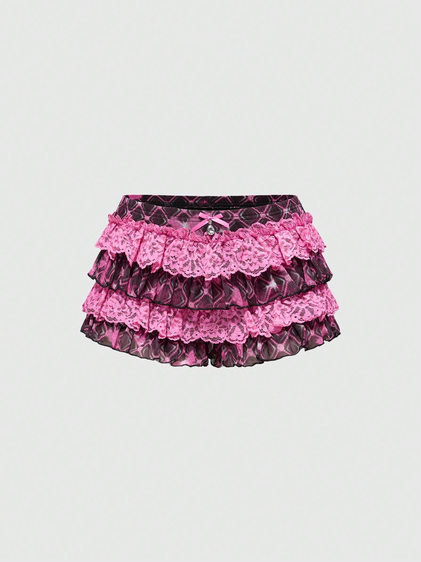 J-Fashion Shorts da donna con stampa quadri, vita bassa, orlo arricciato in in rete multistrato, stile Harajuku Y2K