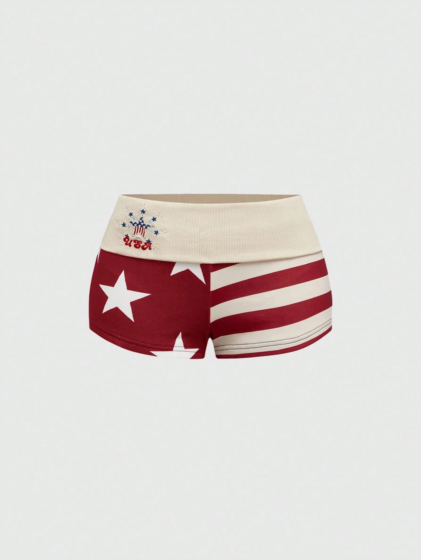 J-Fashion Pantaloncini corti super bassi a vita bassa con stampa retrò della bandiera americana che scopre il girovita, in stile Y2K per donne