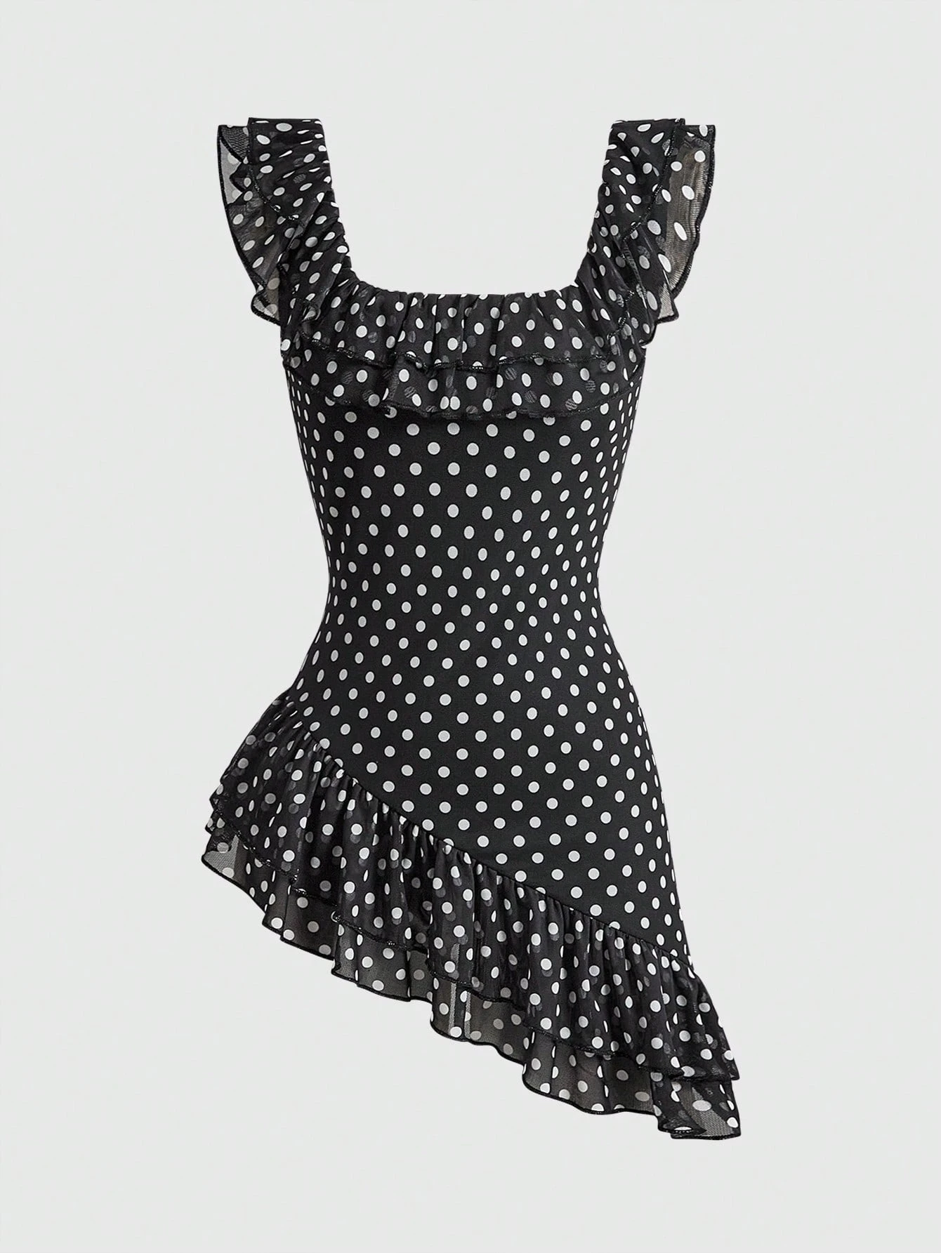 J-Fashion Canotta asimmetrica a pois in stile retrò Y2K