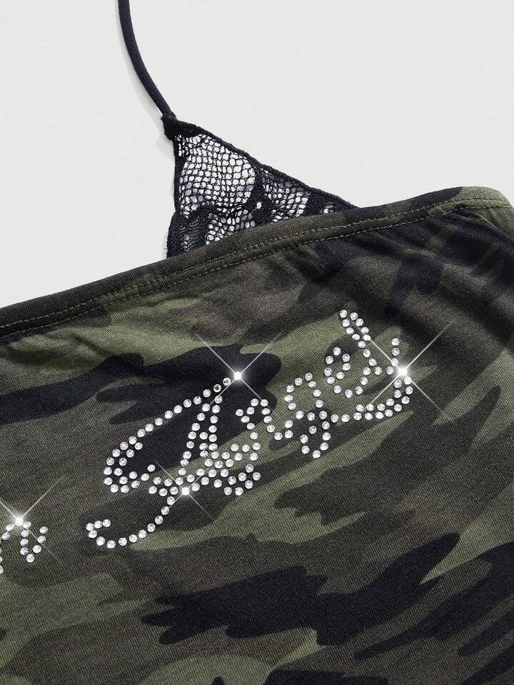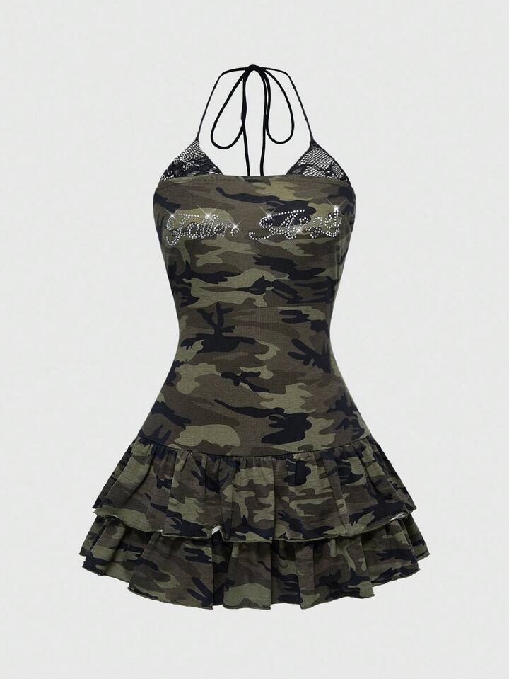 J-Fashion Abito mini aderente senza spalline con maniche a palloncino in stile mimetico Y2K per donne