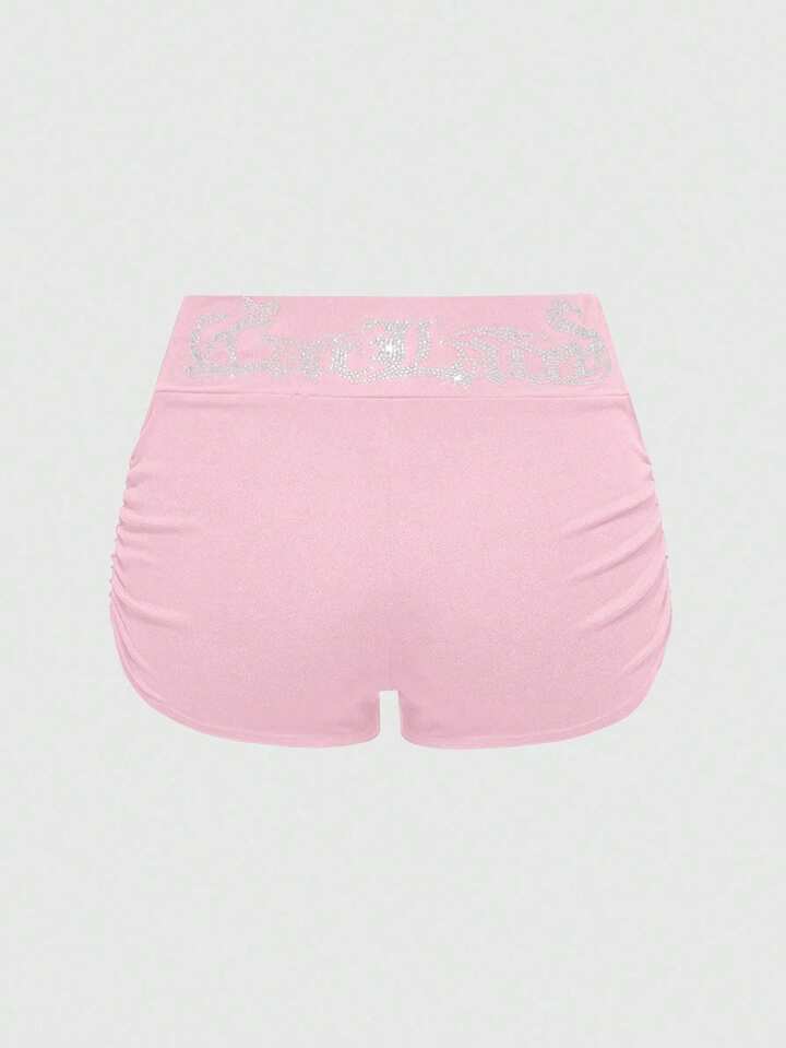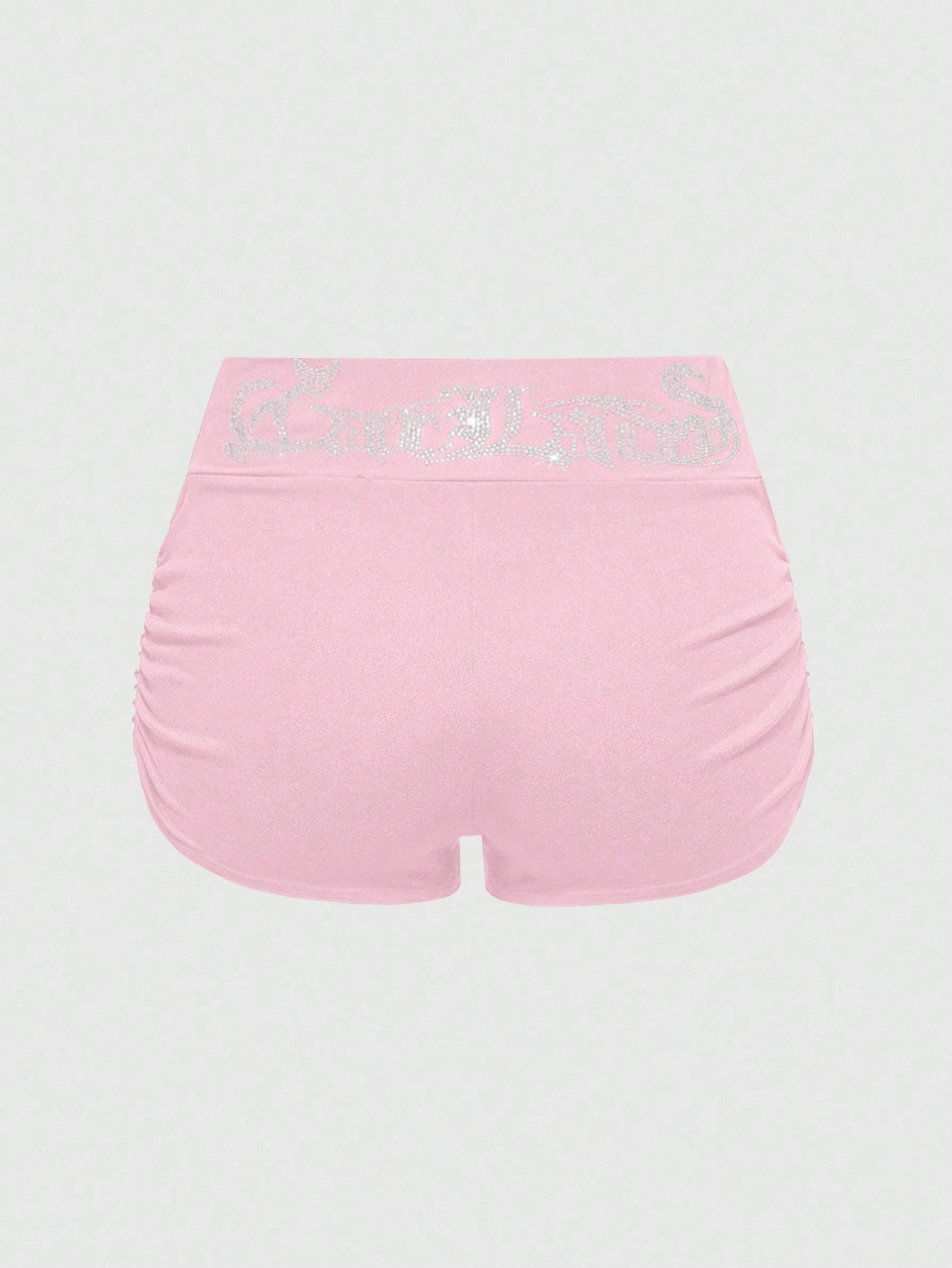 J-Fashion Pantaloncini da donna in stile Y2K a vita bassa con stampa di gatti e strass