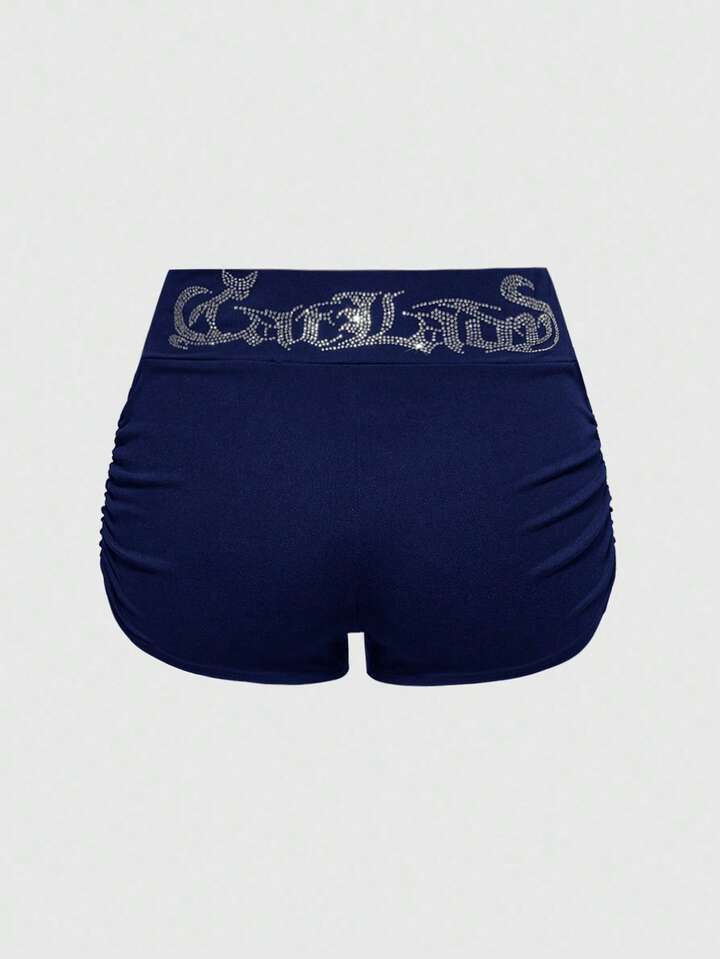 J-Fashion Pantaloncini da donna in stile Y2K a vita bassa con stampa di gatti e strass