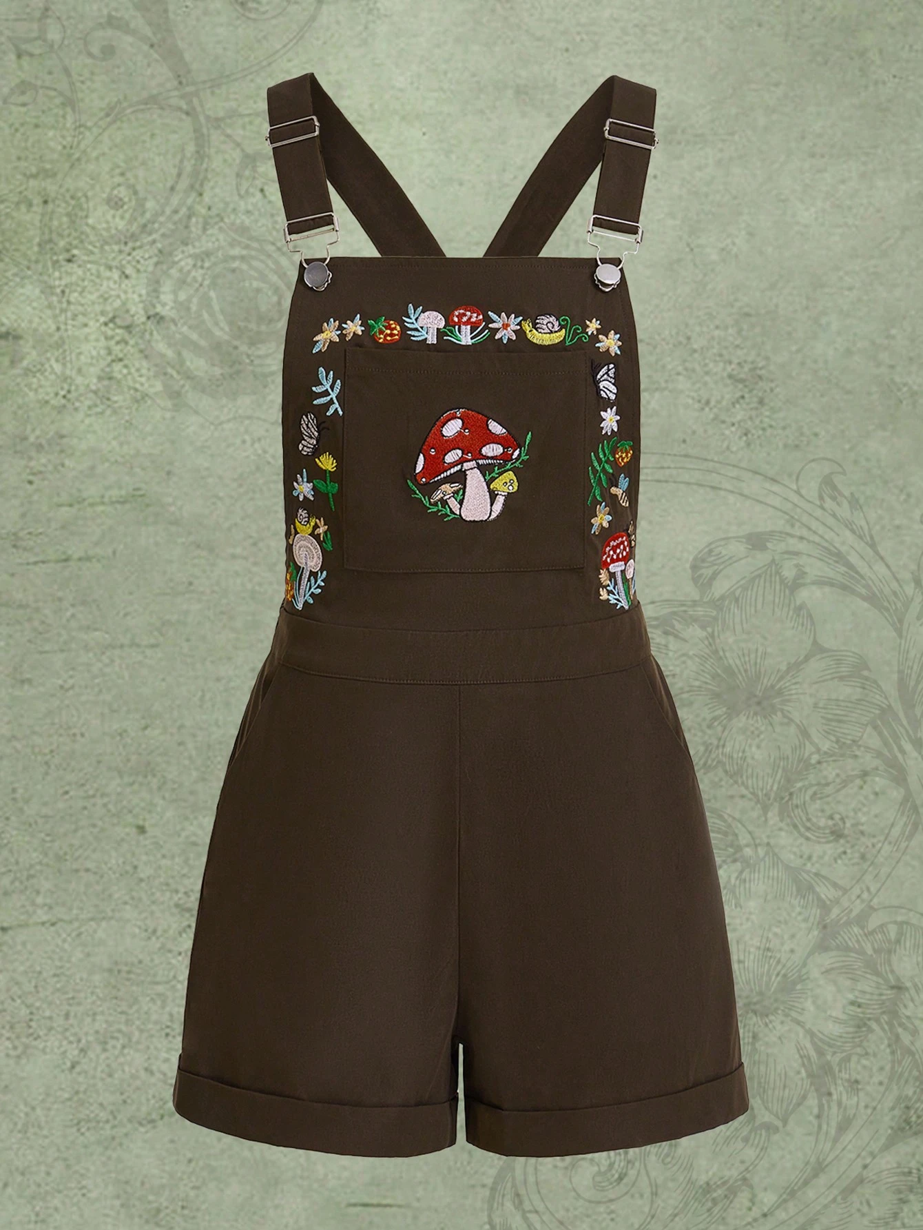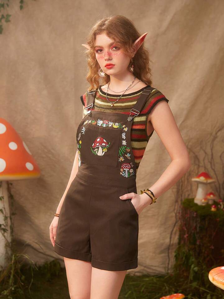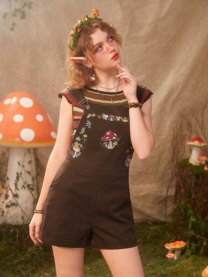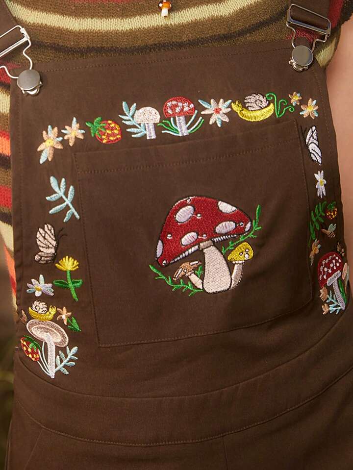 JOYFULSMOLTHINGS Fairycore Tutina salopette con ricamo funghi