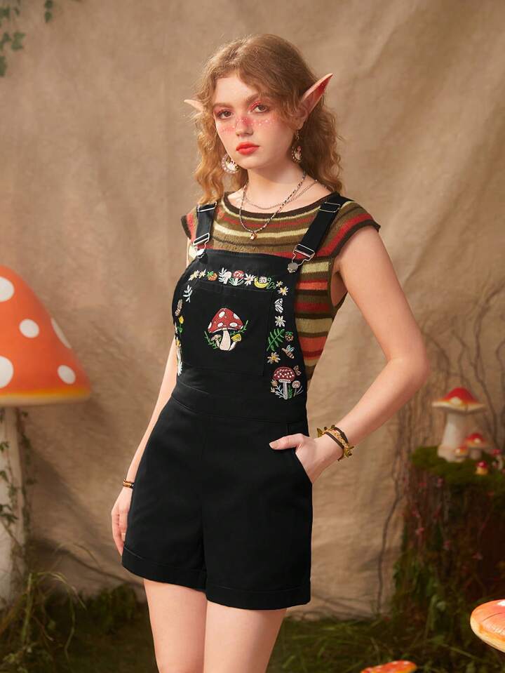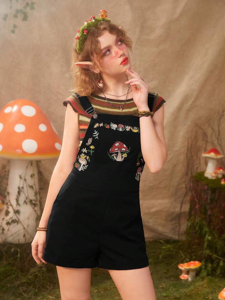 JOYFULSMOLTHINGS Tutina salopette con ricamo funghi