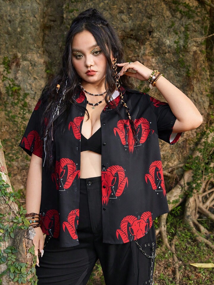Juandamurai Taglie Forti Camicia con stampa grafica con bottone frontale
