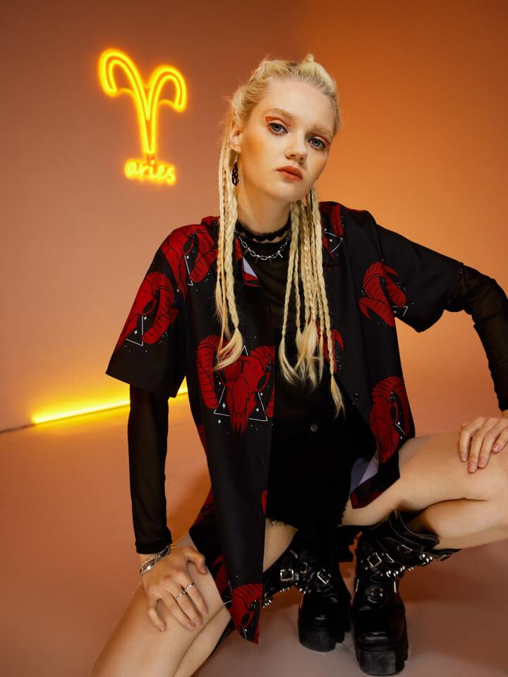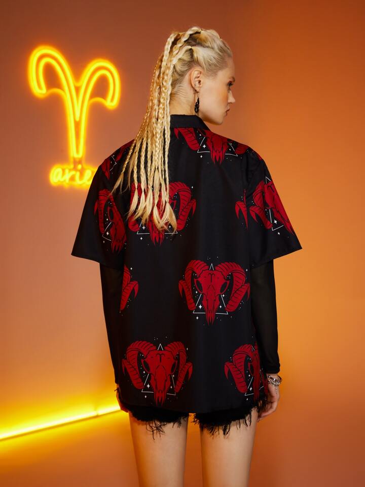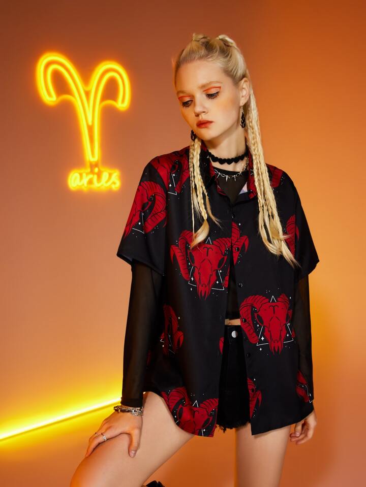 Juandamurai Camicia Ariete con stampa pecore con bottone frontale