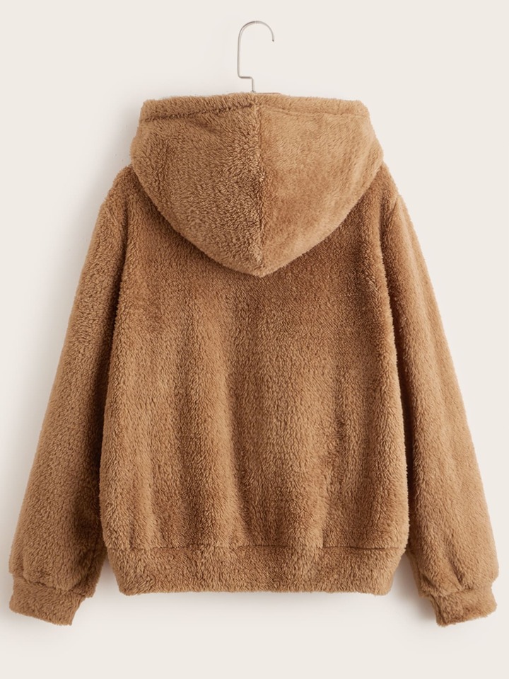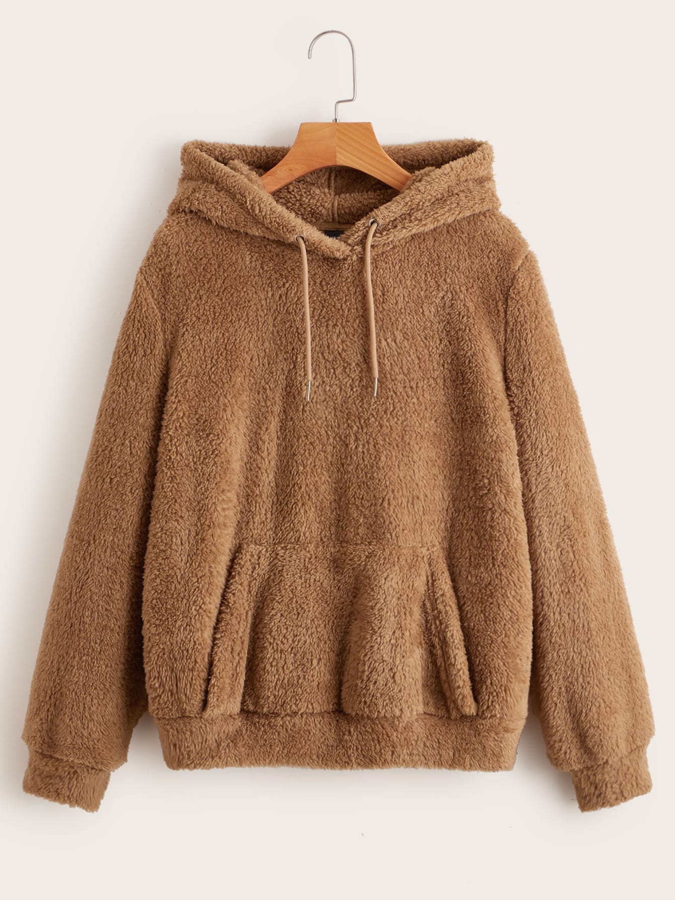 Felpa con cappuccio teddy con tasca a marsupio con coulisse