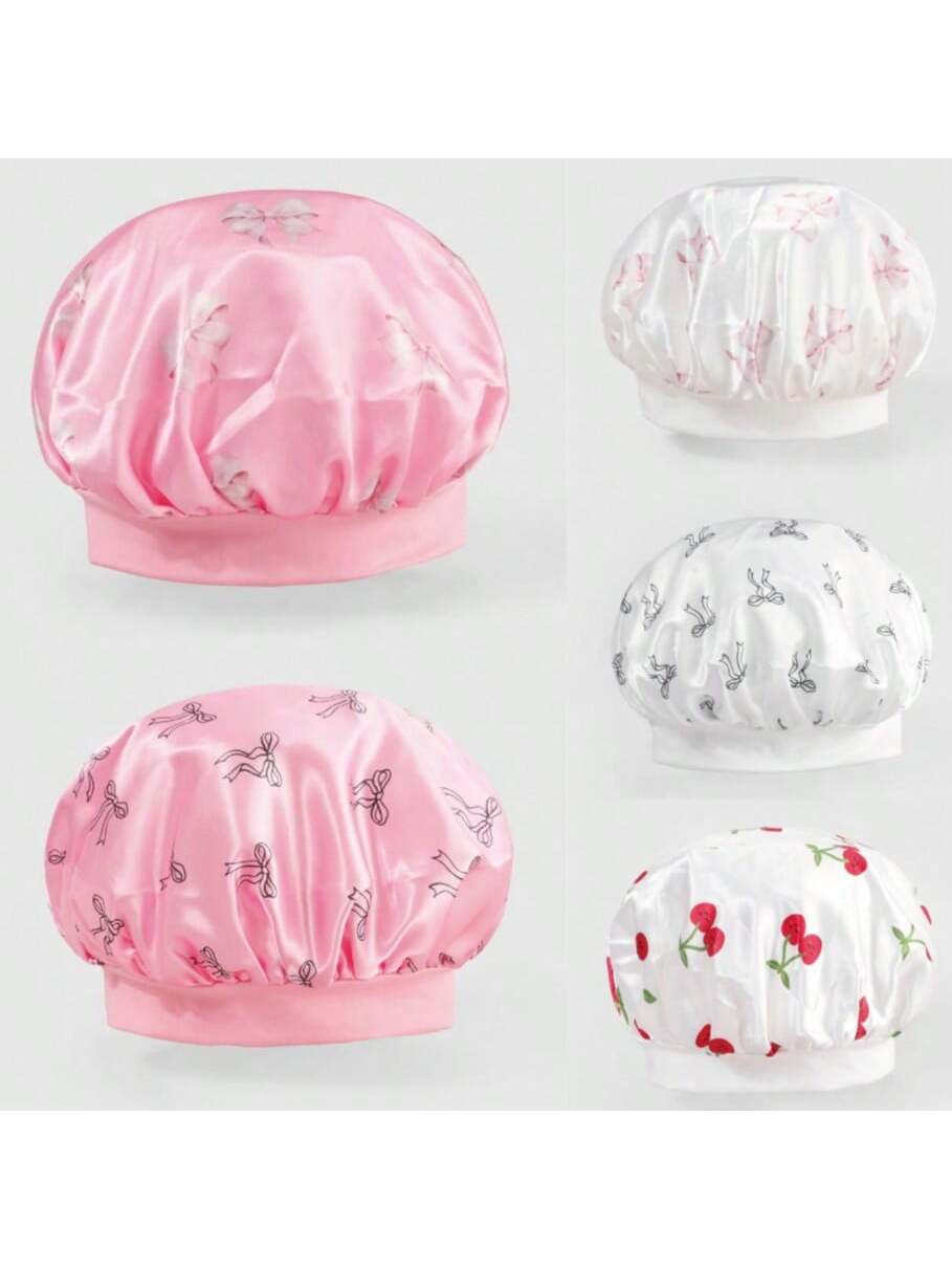 Kawaii 1 Confezione Cuffia da notte con fiocco e ampio bordo, con stampa a ciliegie, elastica, per donne