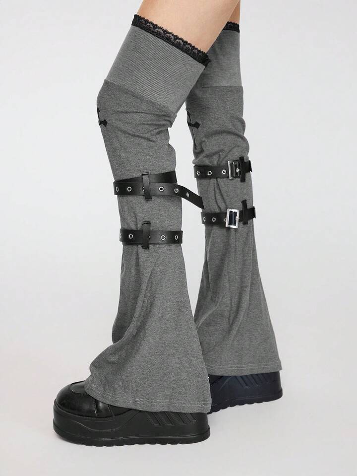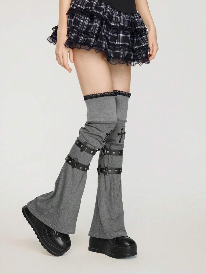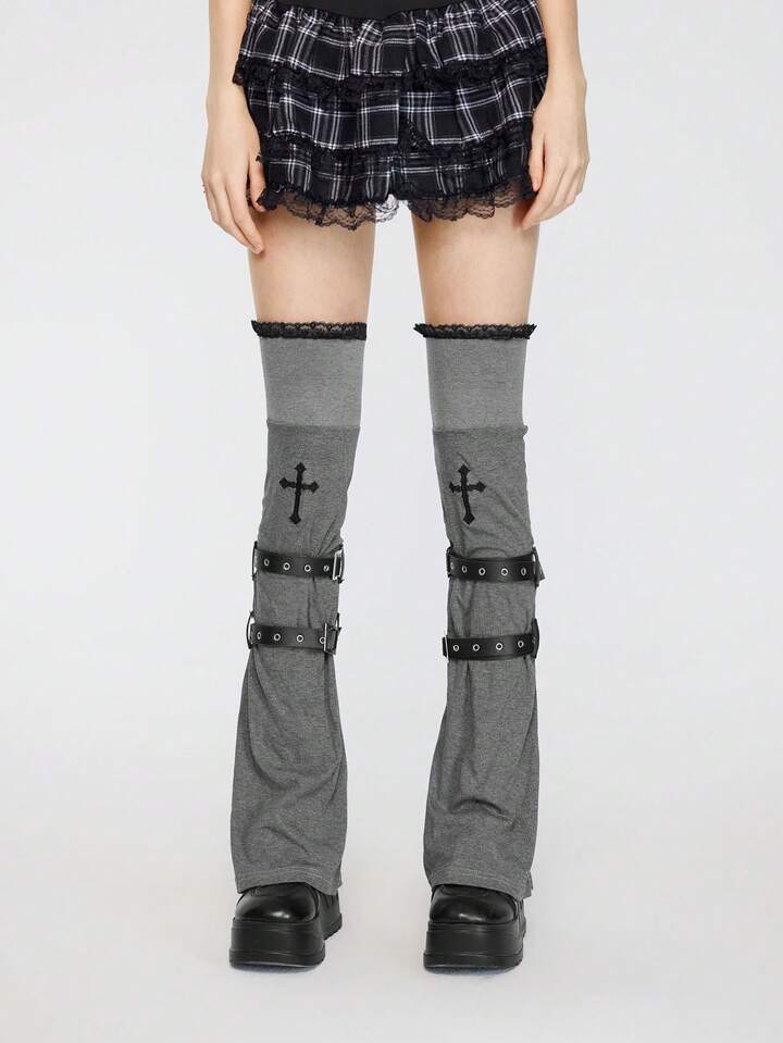 Kawaii Un paio di copri-ginocchio in maglia punk, design di nicchia, ricamo a croce, copristivali in pizzo, copertura per calze impilate con cinturini per primavera e autunno, non si sfilacciano facilmente, copertura per gambe al ginocchio