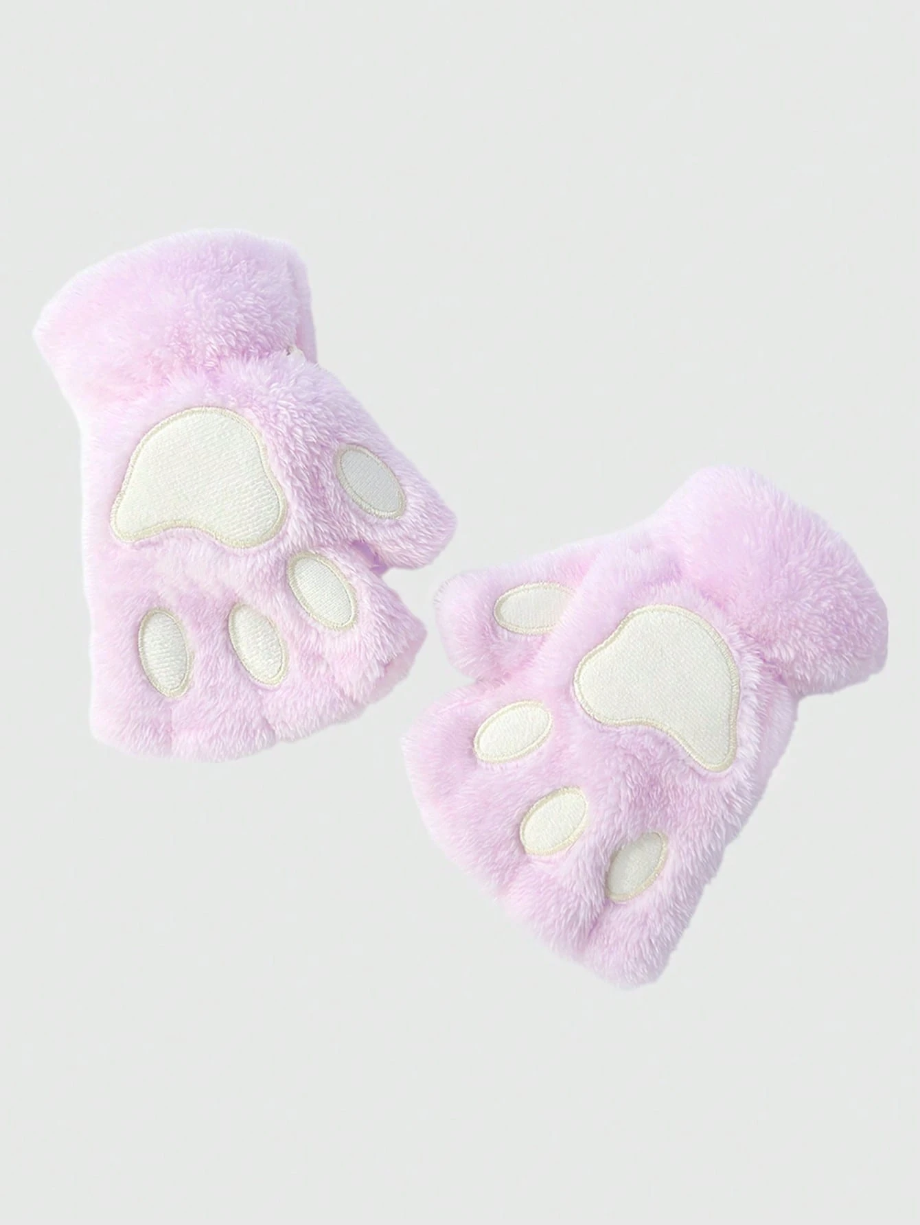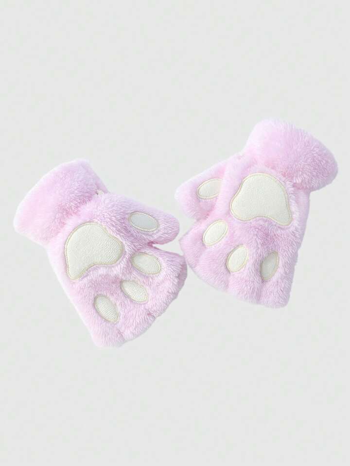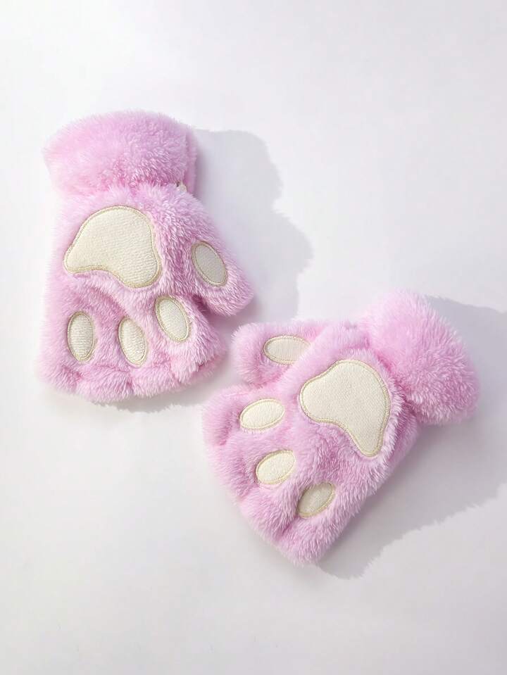 Kawaii 1 Paio di guanti senza dita con zampe di gatto in pelliccia, adatti per uso quotidiano