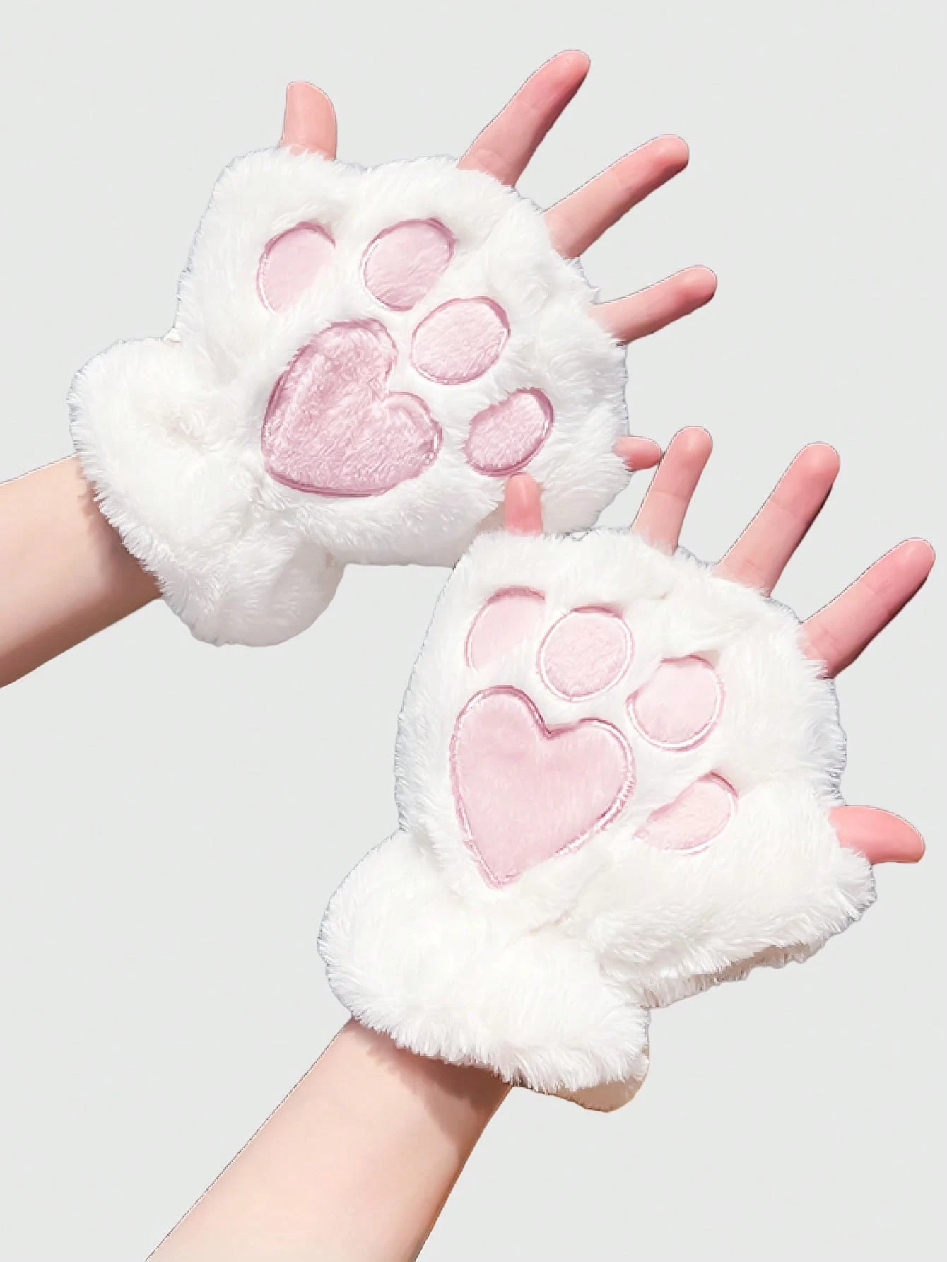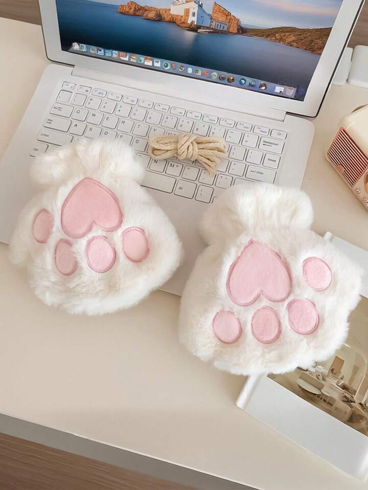 Kawaii 1 Paio di guanti senza dita con zampe di gatto in pelliccia, adatti per uso quotidiano