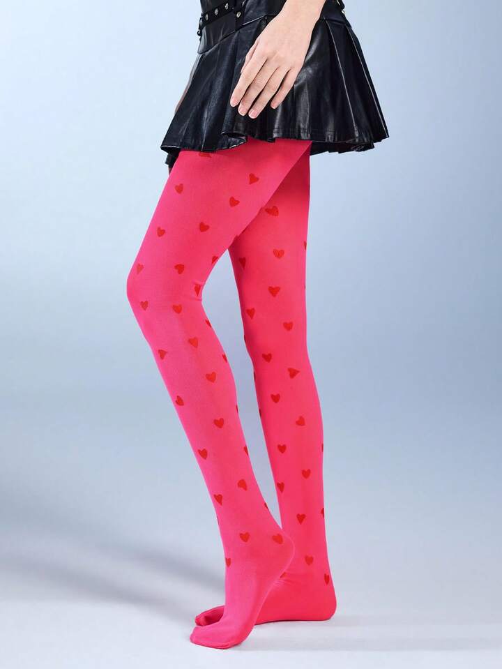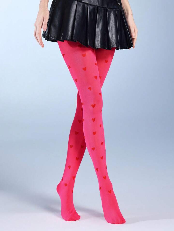 Kawaii 1 Paio di Collant da Donna con Motivo a Cuore Argento, Minimalista Moda Casual per Tutte le Stagioni, Adatto per Uso Quotidiano