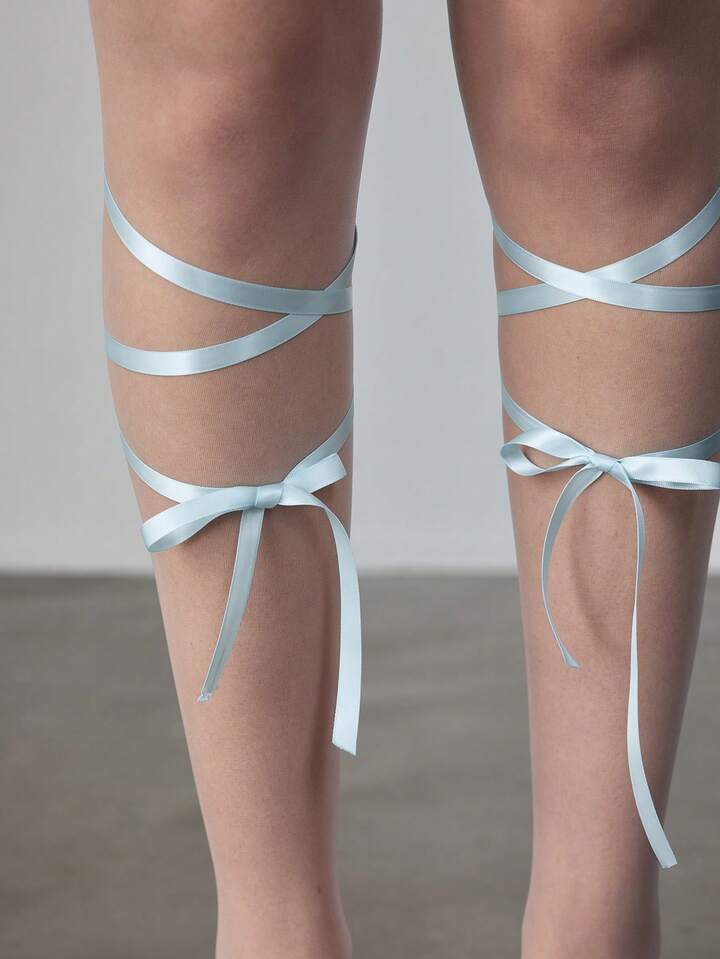 Kawaii 1 paio di calze velate bianche delicate da donna, con legacci in nastro blu, adatte per tutte le stagioni