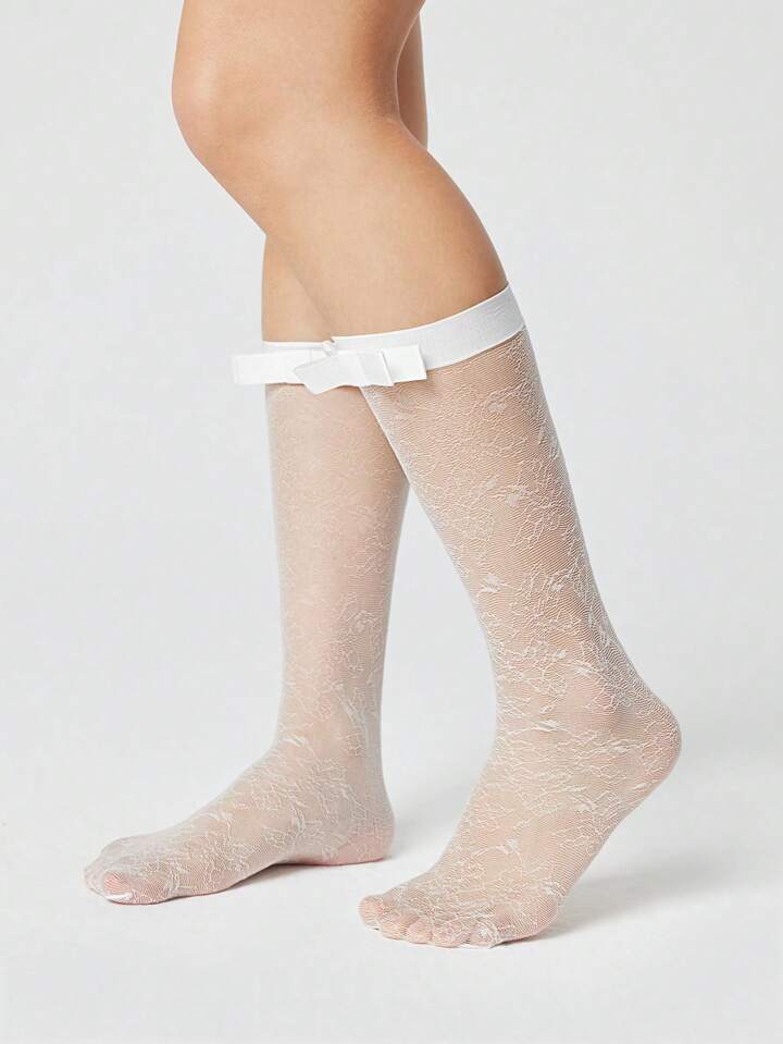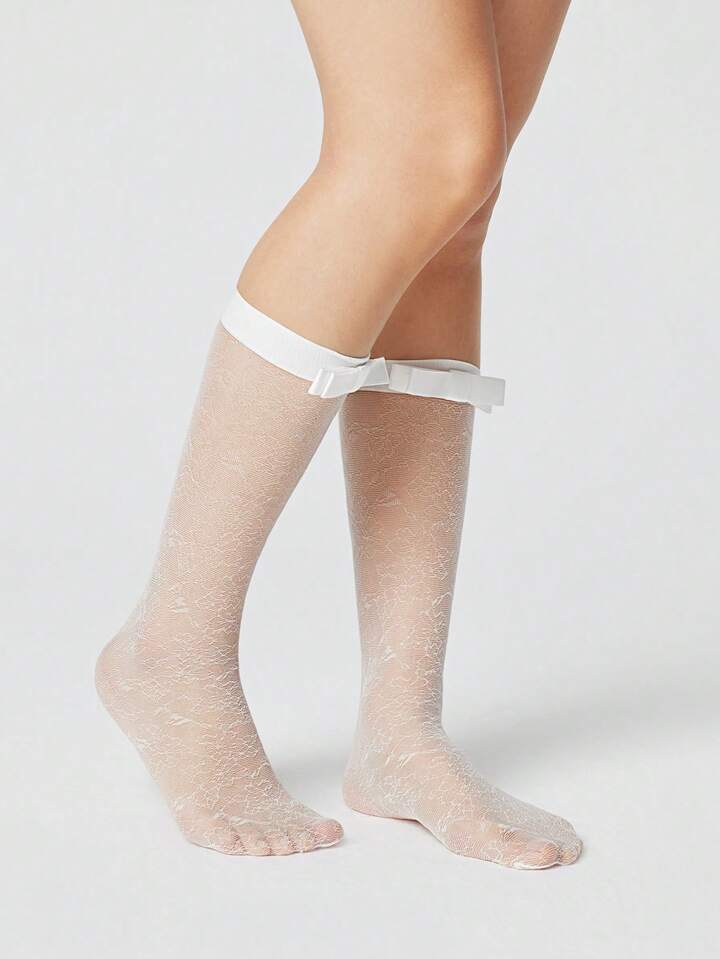 Kawaii 1 Paio Di Eleganti Calze In Tulle Con Fiocco E Cristalli Per Donna, Versatili Per Tutte Le Stagioni