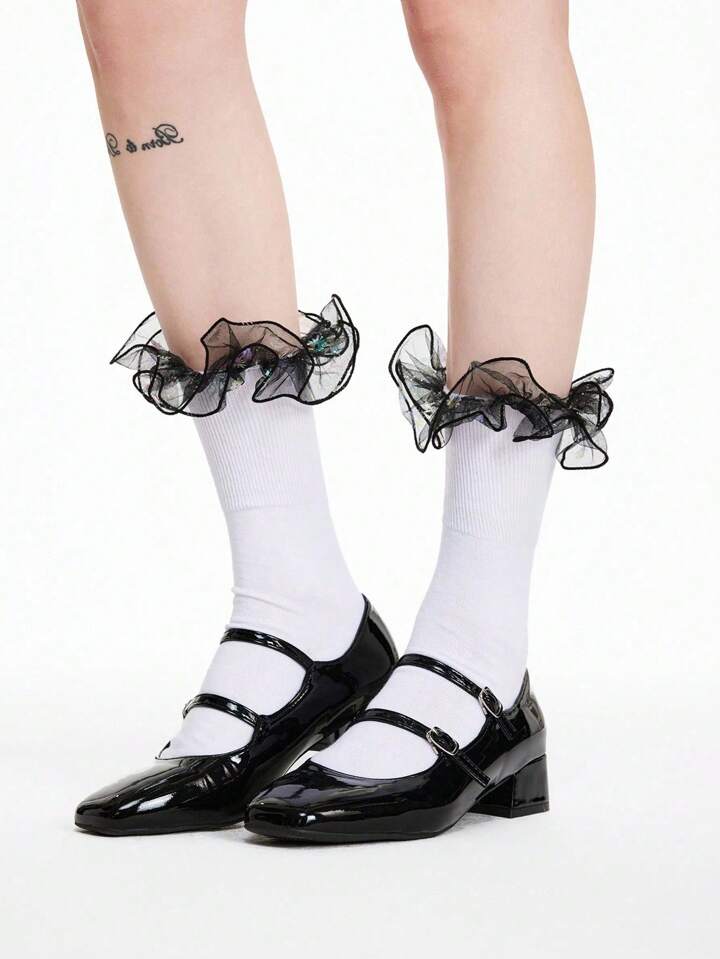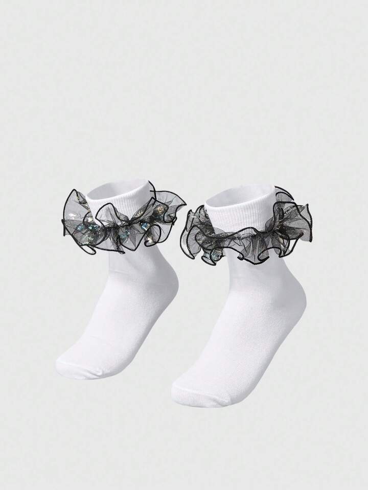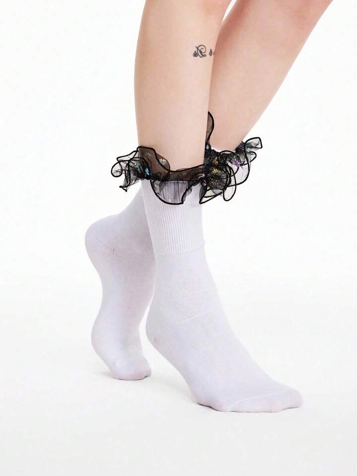 Kawaii 1 Paio di Calze Reversibili Alla Caviglia Con Bordo In Pizzo, Adatte Per Tutte Le Stagioni