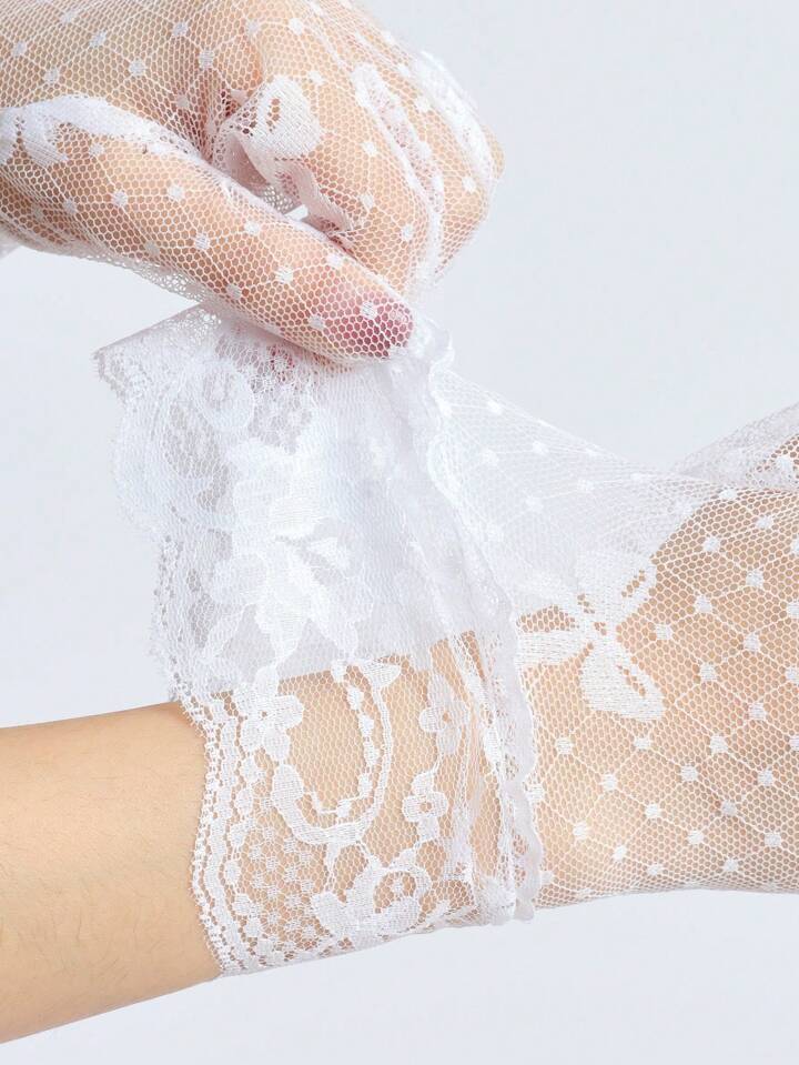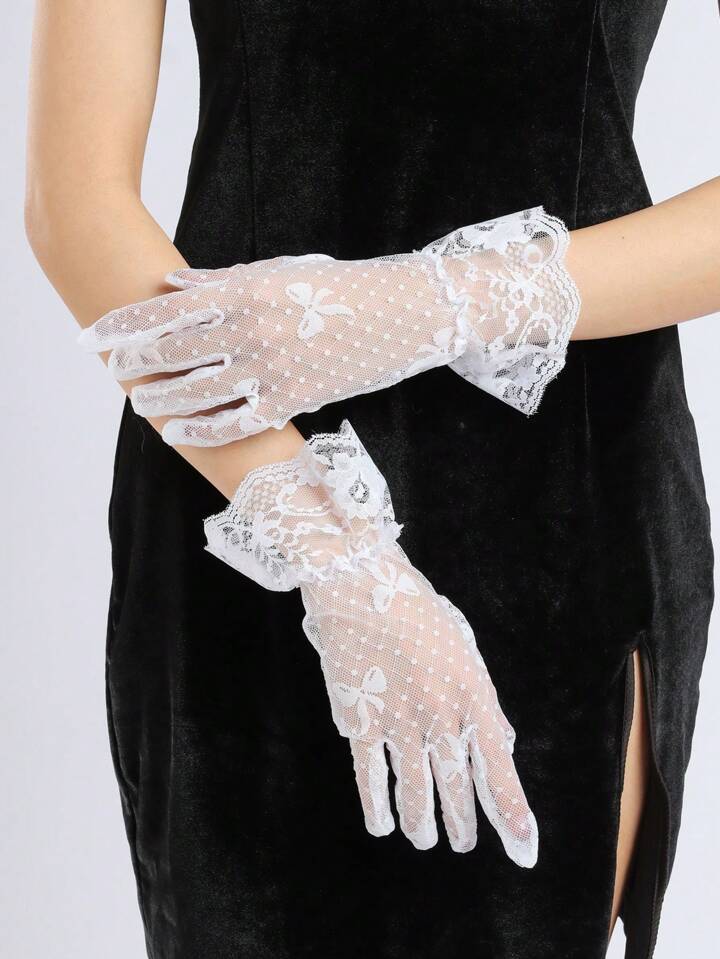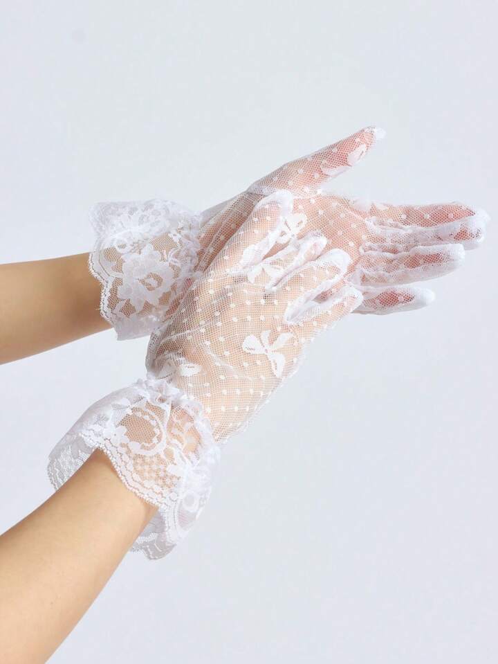 Kawaii 1 Paio di Guanti da Sposa in Stile Lolita Bianchi con Fiocco e Bordo in Pizzo per Donne