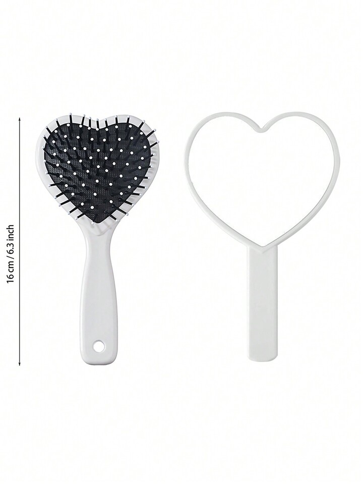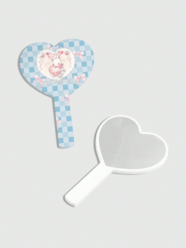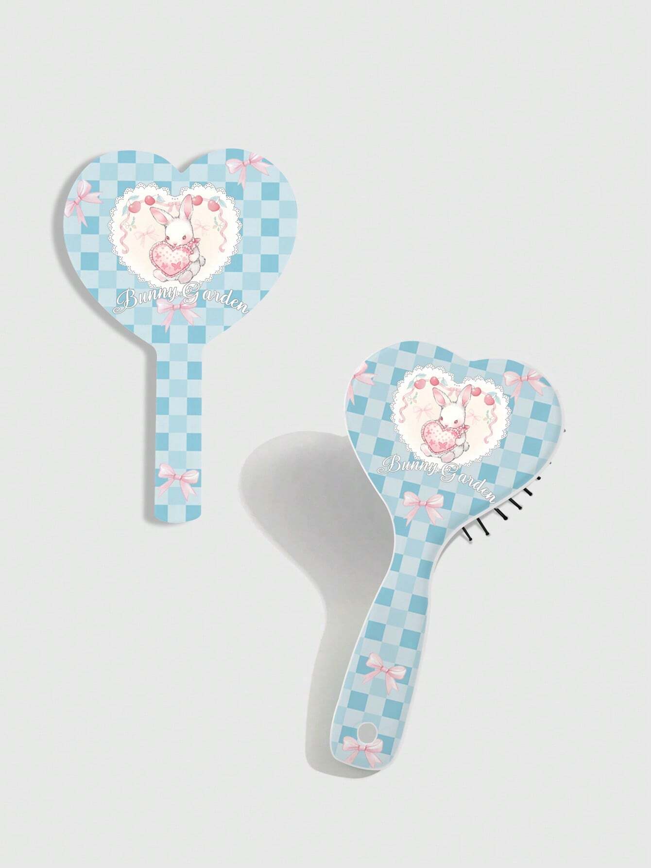 Kawaii 1 set Pettine e specchio a forma di cuore portatili con design di coniglio a quadretti e fiocco