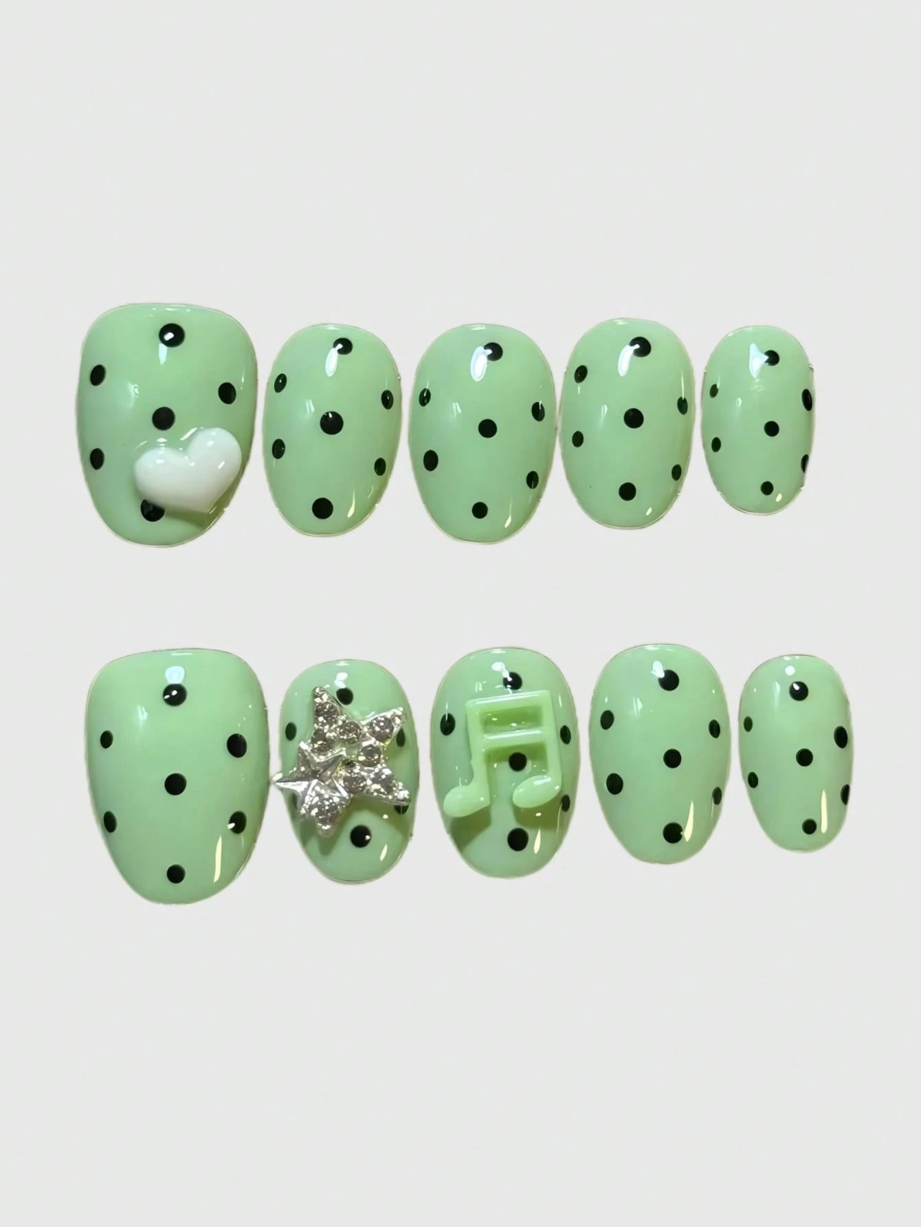 Kawaii 10 pezzi Patch unghie finte con ali d'angelo carine, cuore romantico, fiocco stile ballerina, ali bianche, pois dorati vintage classici, serie rosa, realizzate a mano, adatte per uscite quotidiane e appuntamenti