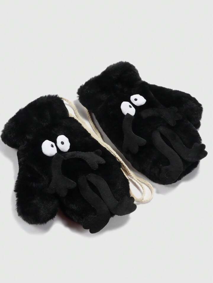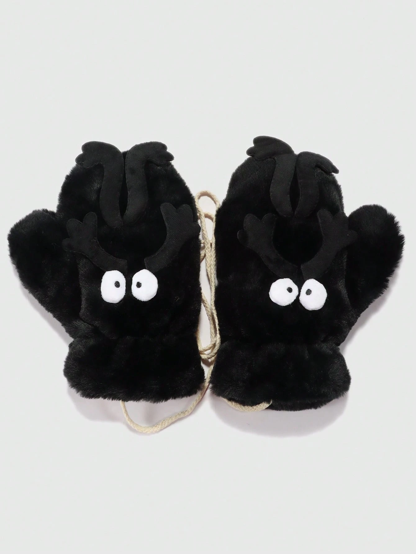 Kawaii 1 Paio Di Guanti Invernali Decorati Con Palline Di Carbone Adorabili Per Donne